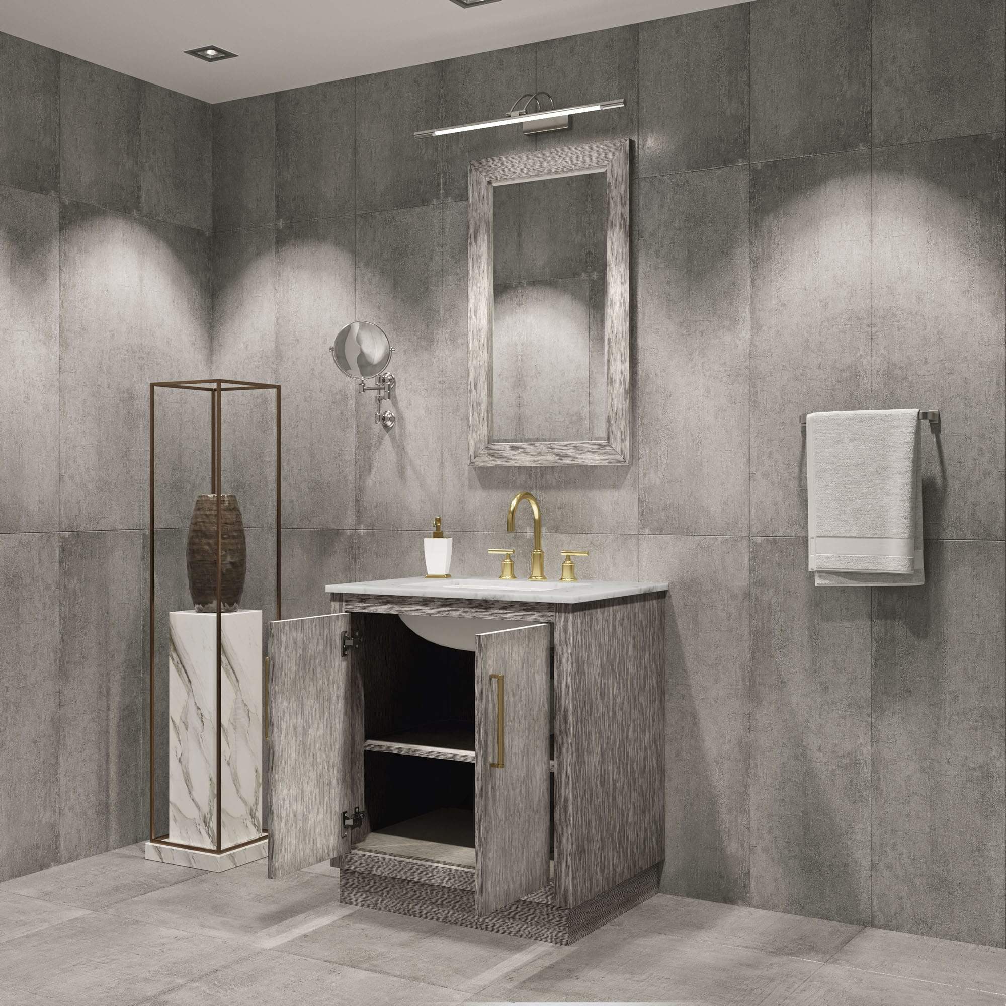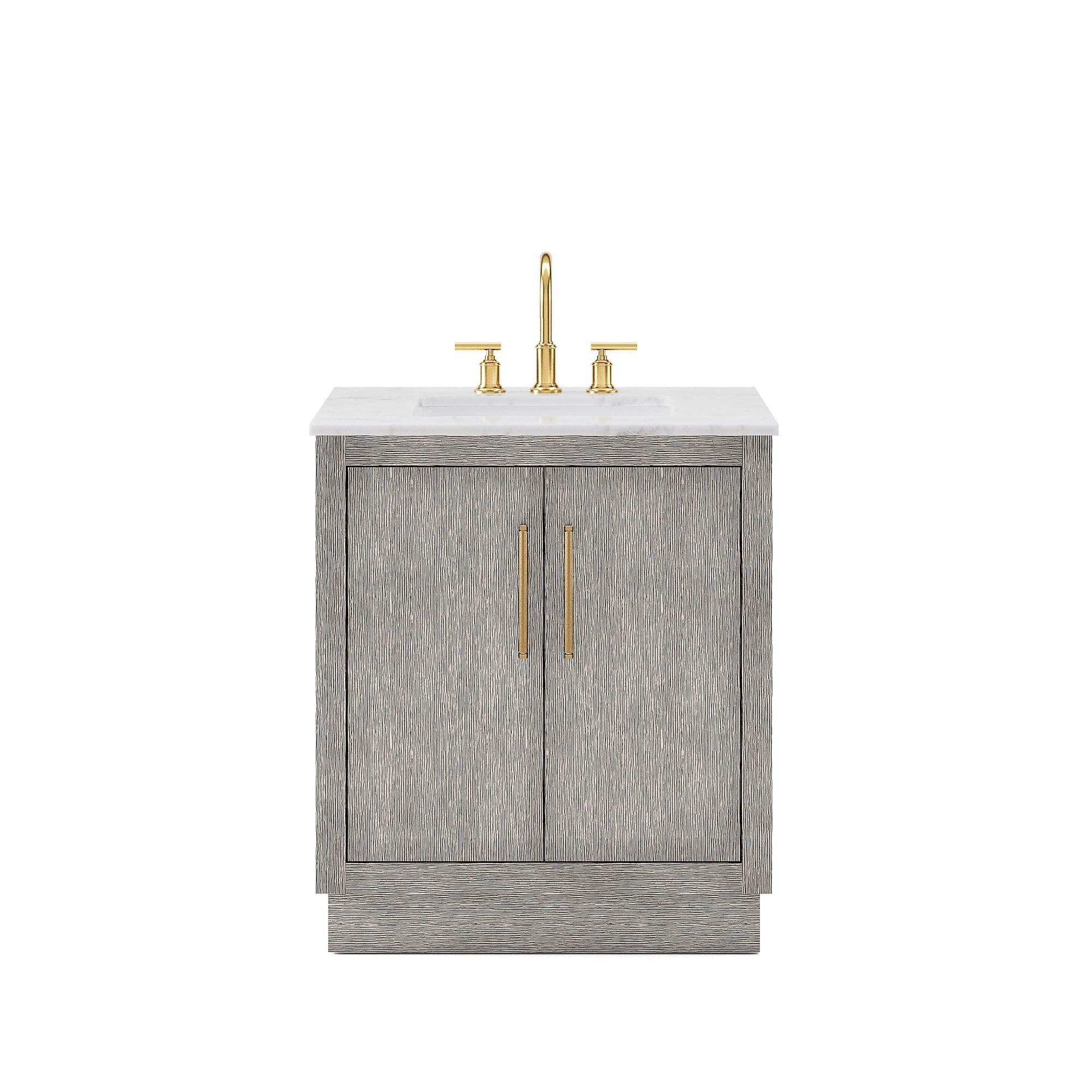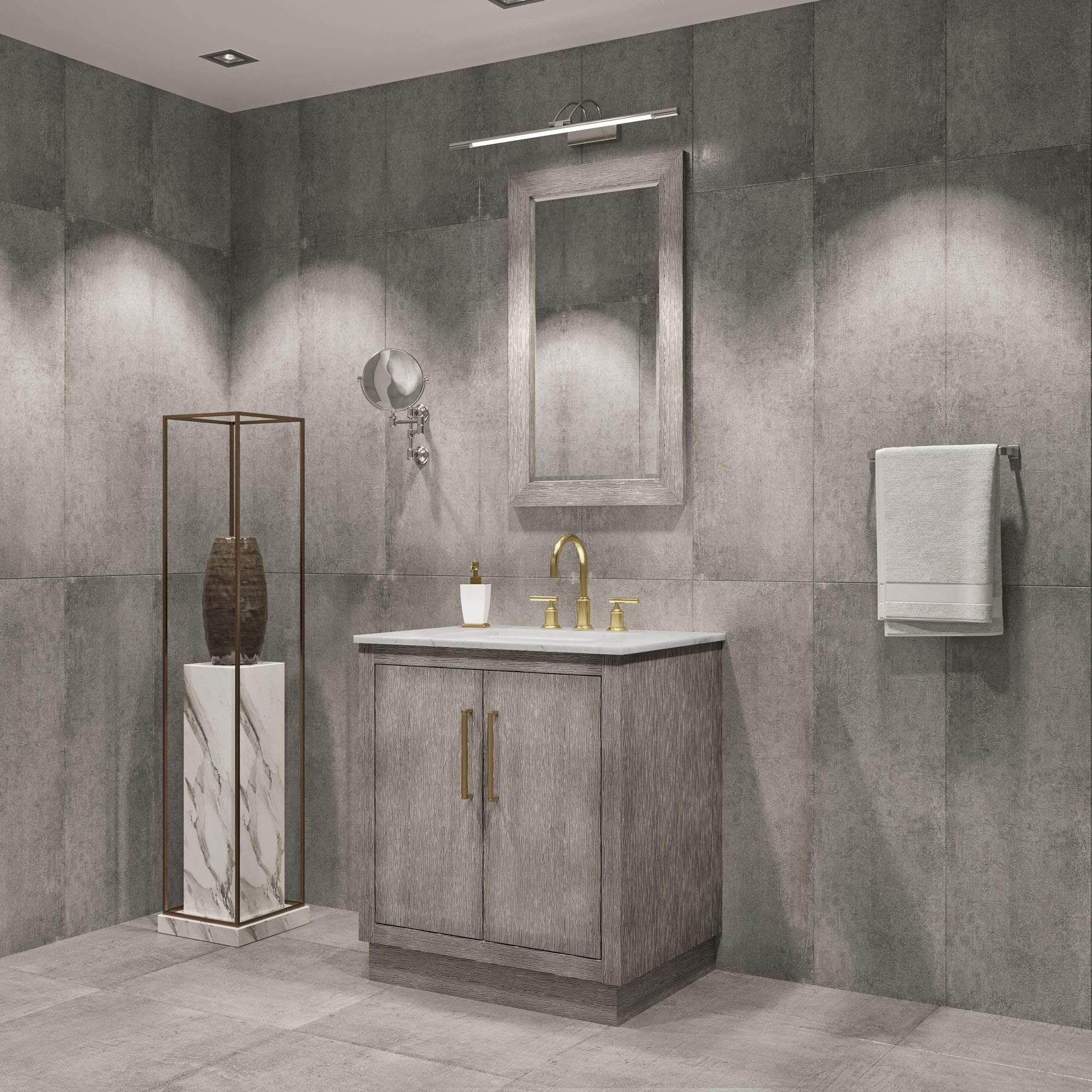Water Creation HU30CW06GK-000BL1406 Hugo 30 In. Single Sink Carrara White Marble Countertop Vanity in Grey Oak with Gooseneck Faucet