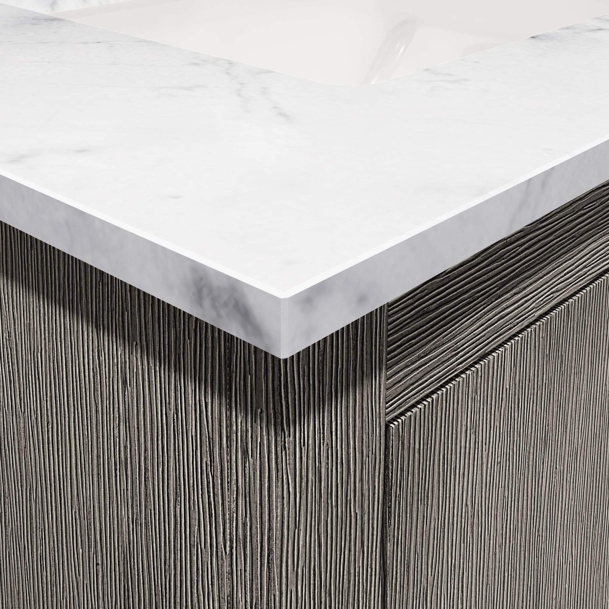 Characterized by its neutral tones and Manhattan style, Hugo collection by Water Creation defines unified modern bathroom design. With its clean lines and bold proportions, the refinement brings minimal aesthetic to the bath. Formulated by the interaction of lustrous solid brass and explicit diamond knurling, the extraordinary hardware accents in two exquisite finishes: Chrome and Satin Gold. Dressed to impress with wood grain ash veneers in a wire-brushed grey oak finish, this vanity set is such a brilliant choice for rooms with modern scheme. Complete with a pre-assembled ceramic sink and matte Carrara white marble countertop, this vanity blends form and function for your daily routines.