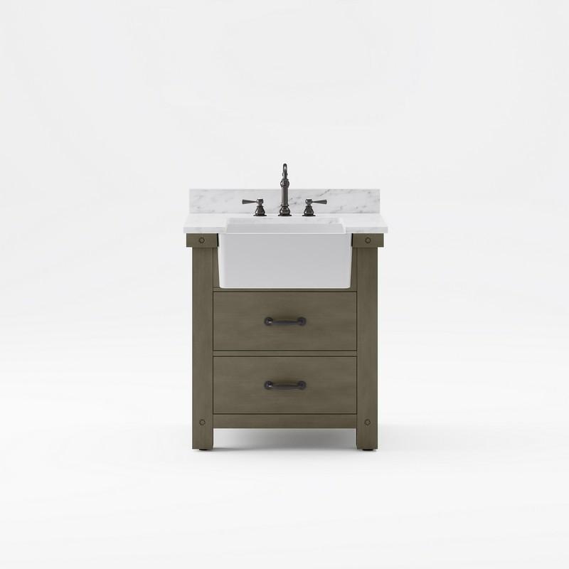 Water-Creation PY30CW03GG-000000000 Paisley 30 Inch Single Sink Carrara White Marble Countertop Vanity in Grizzle Gray