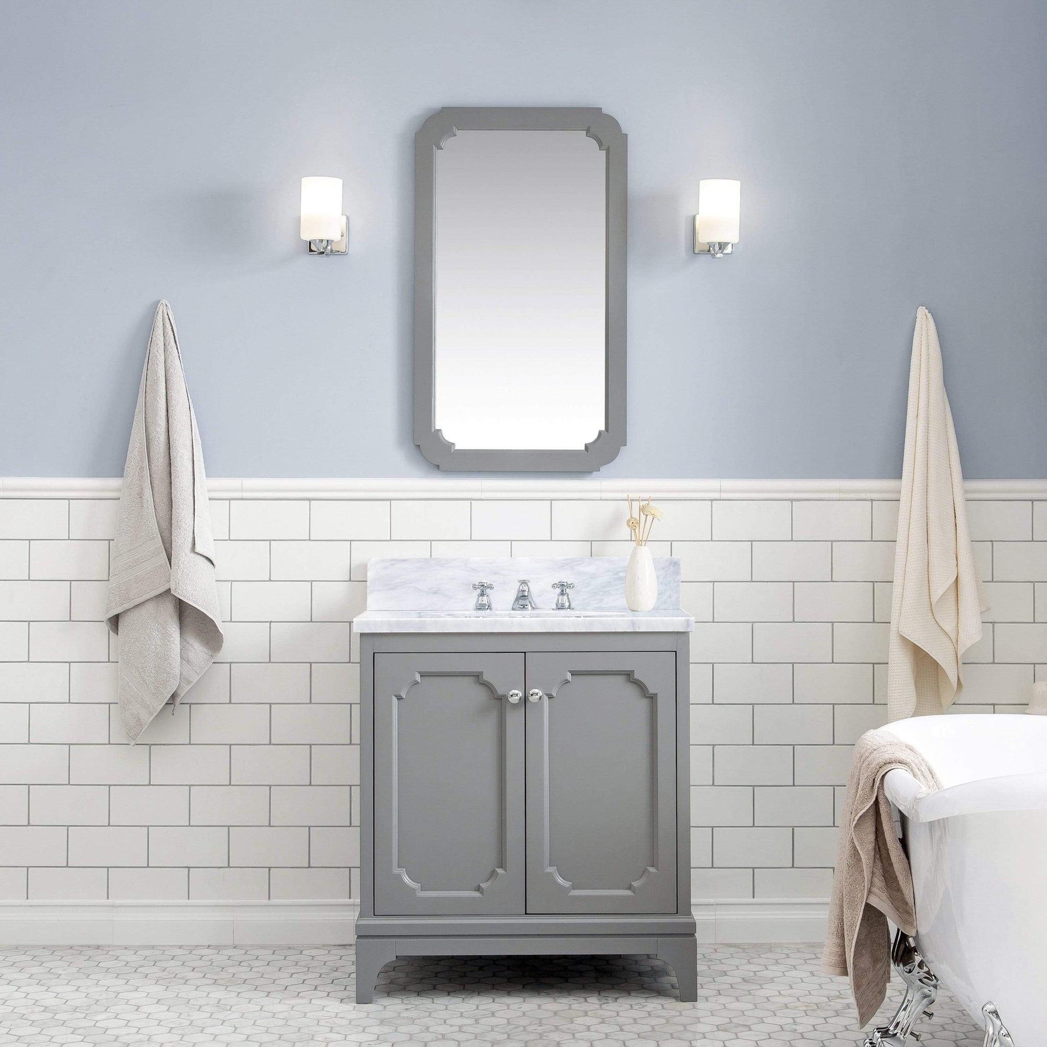 Water-Creation QU30CW01CG-000000000 Queen 30 Inch Single Sink Carrara White Marble Countertop Vanity in Cashmere Grey