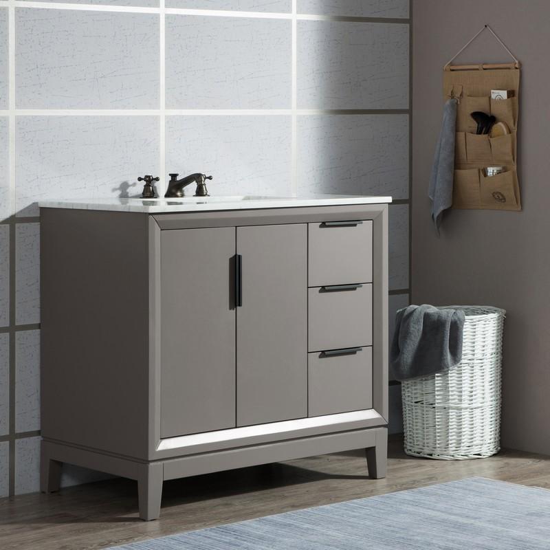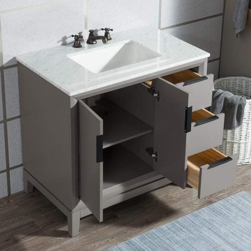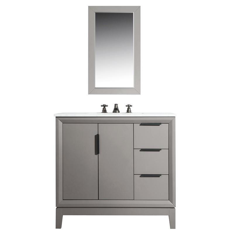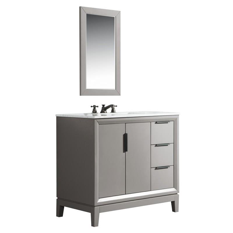 Water Creation VEL036CWCG08 Elizabeth 36 Inch Single Sink Carrara White Marble Vanity In Cashmere Grey with Matching Mirror and Lavatory Faucet