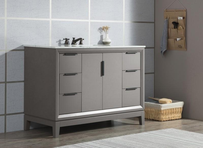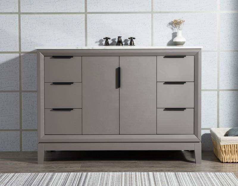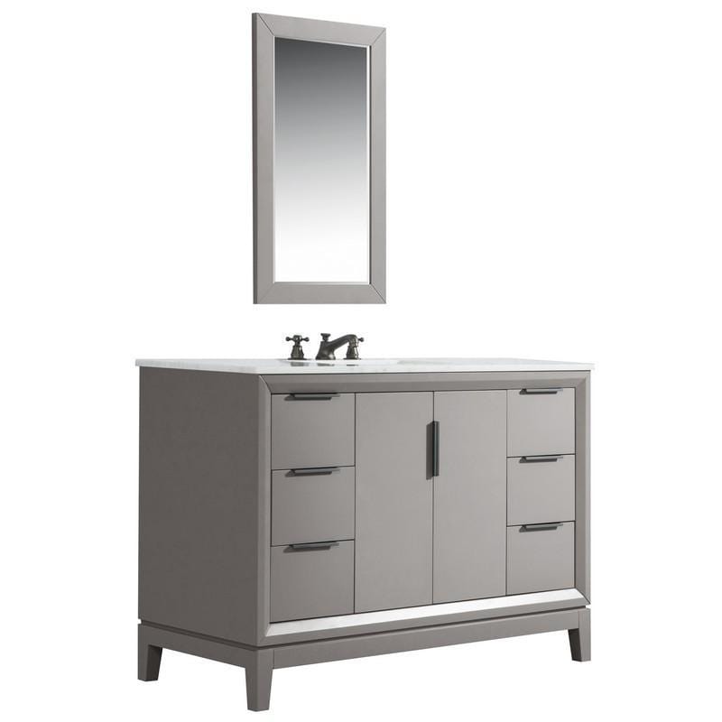 Water Creation VEL048CWCG01 Elizabeth 48 Inch Single Sink Carrara White Marble Vanity In Cashmere Grey With Matching Mirror