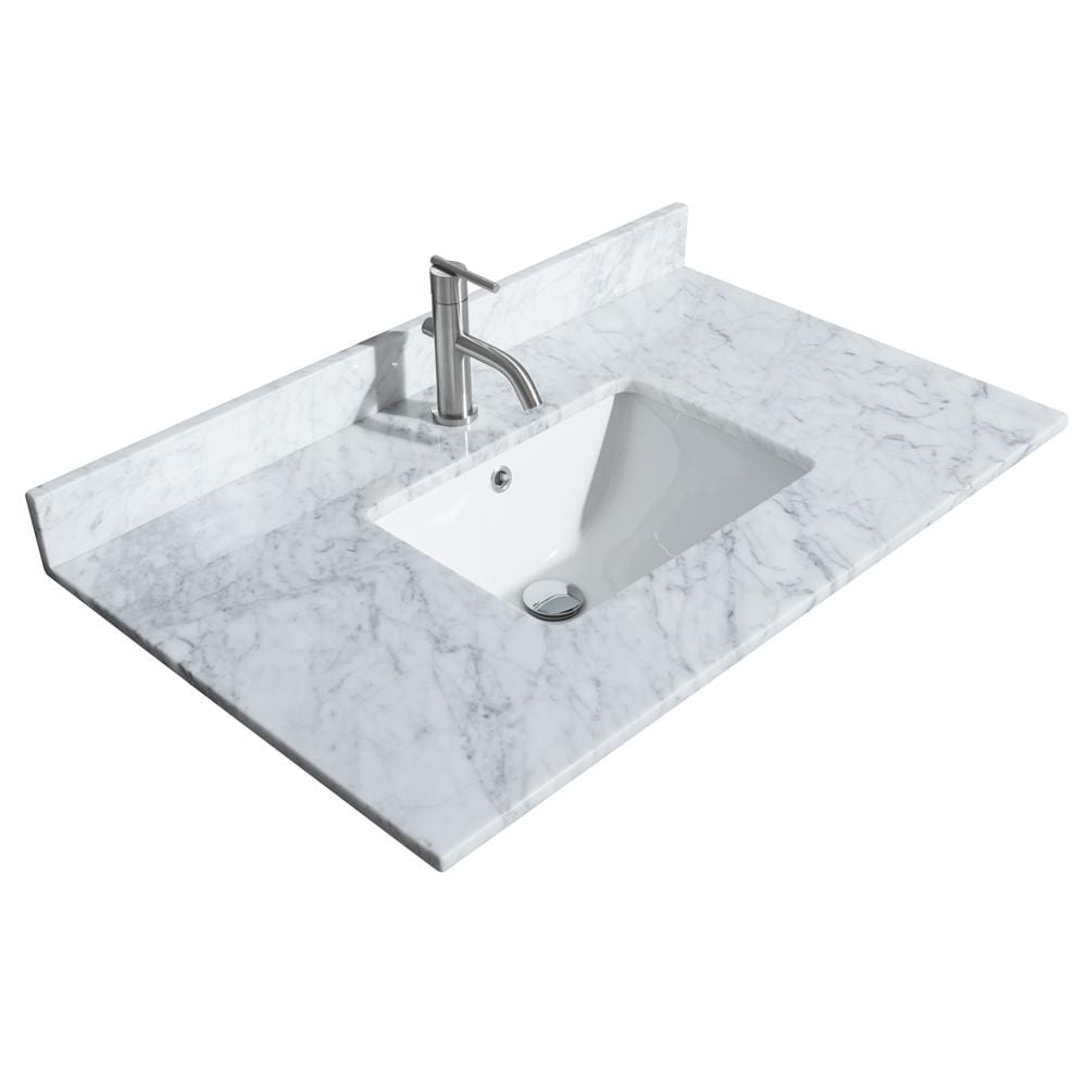 - White Carrara Marble countertop includes 3" backsplash