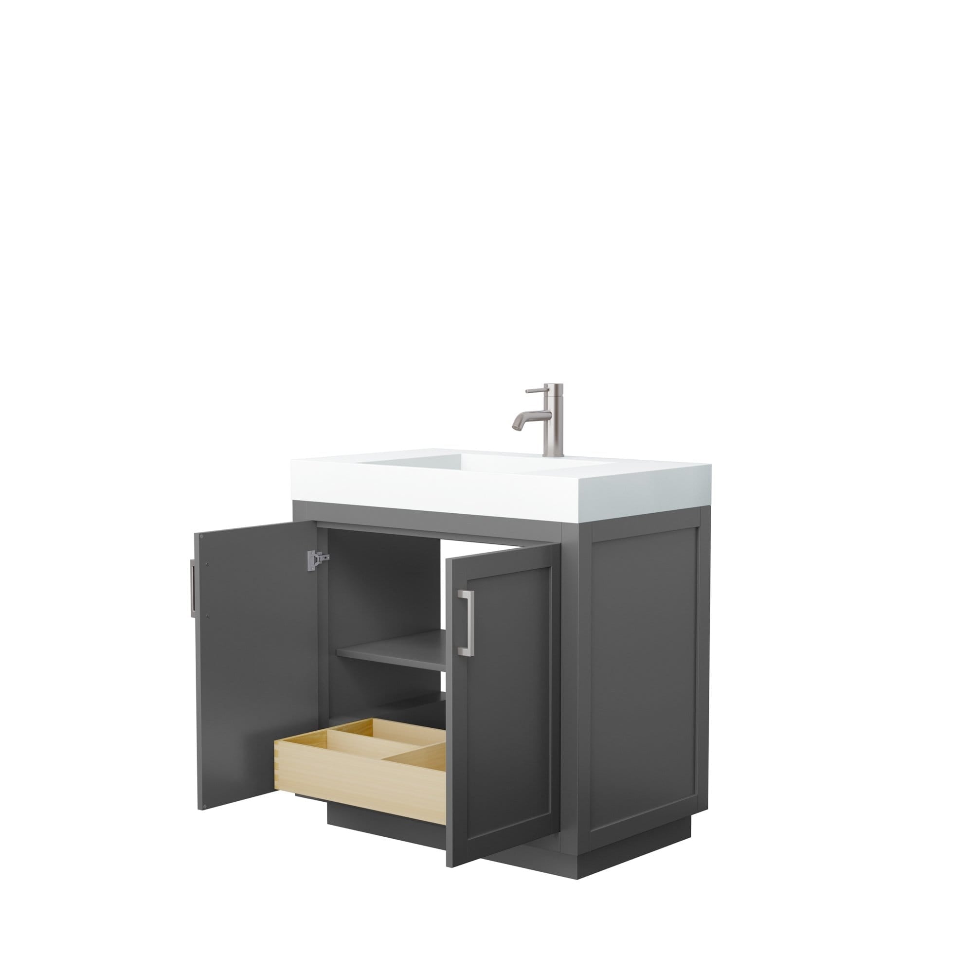 Wyndham Collection WCF292936SKGK4INTMXX Miranda 36 Inch Single Bathroom Vanity in Dark Gray, 4 Inch Thick Matte White Solid Surface Countertop, Integrated Sink, Brushed Nickel Trim