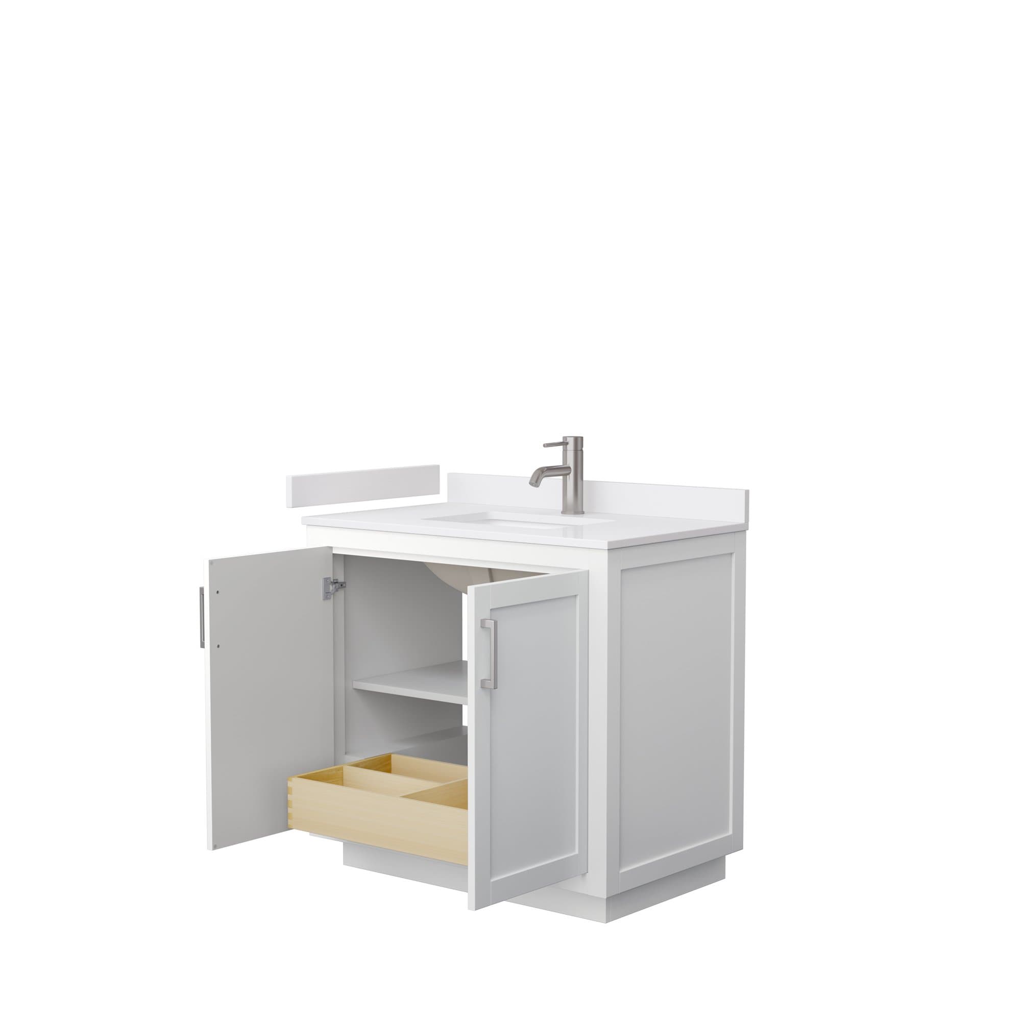 Wyndham Collection WCF292936SWHWCUNSMXX Miranda 36 Inch Single Bathroom Vanity in White, White Cultured Marble Countertop, Undermount Square Sink, Brushed Nickel Trim