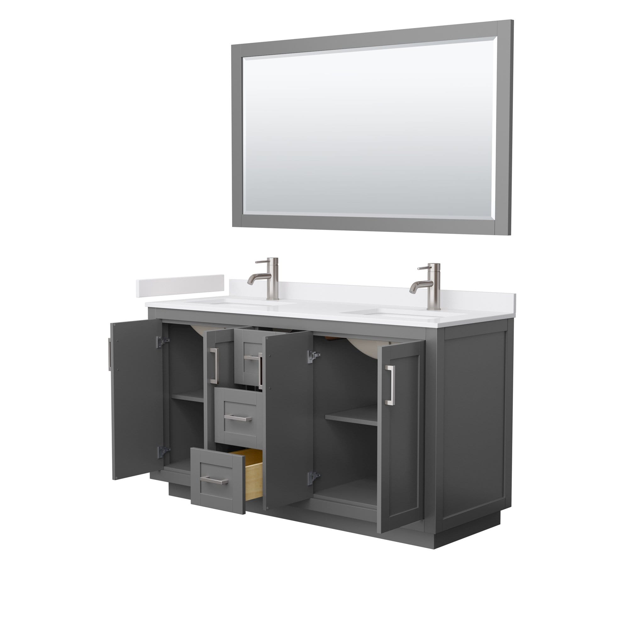 Wyndham Collection WCF292960DKGWCUNSM58 Miranda 60 Inch Double Bathroom Vanity in Dark Gray, White Cultured Marble Countertop, Undermount Square Sinks, Brushed Nickel Trim, 58 Inch Mirror