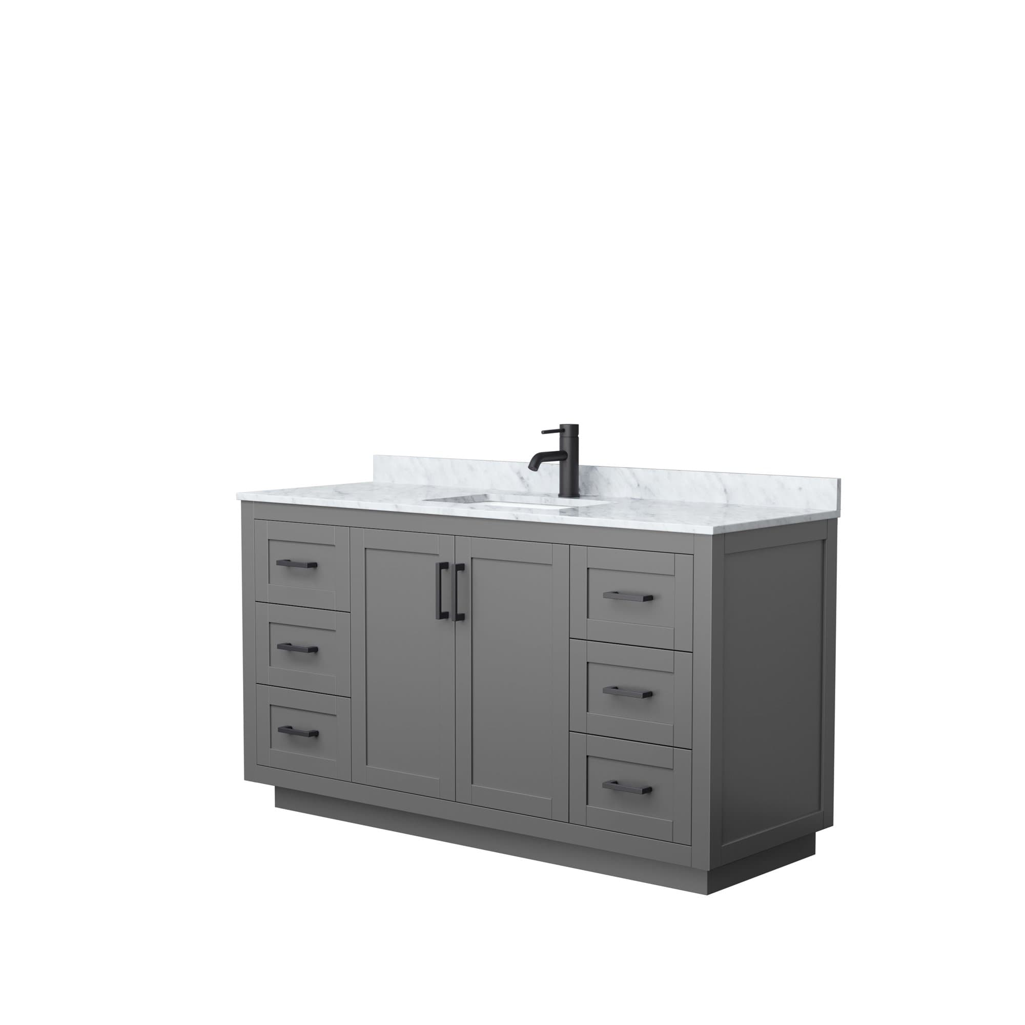 Wyndham Collection WCF292960SGBCMUNSMXX Miranda 60 Inch Single Bathroom Vanity in Dark Gray, White Carrara Marble Countertop, Undermount Square Sink, Matte Black Trim
