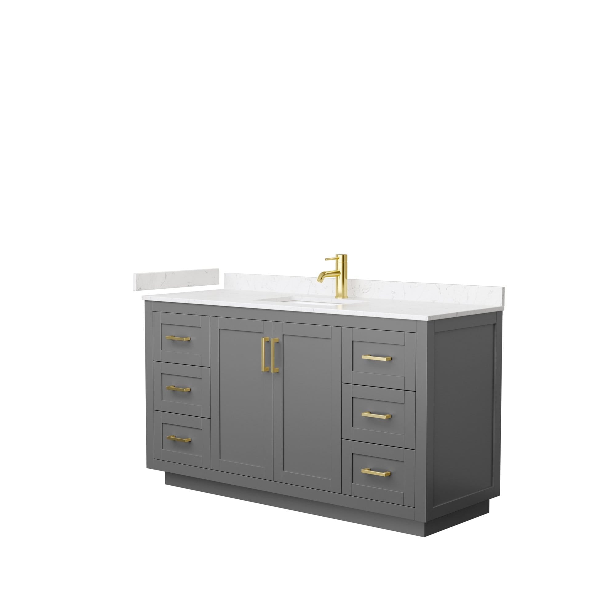 Wyndham Collection WCF292960SGGC2UNSMXX Miranda 60 Inch Single Bathroom Vanity in Dark Gray, Light-Vein Carrara Cultured Marble Countertop, Undermount Square Sink, Brushed Gold Trim