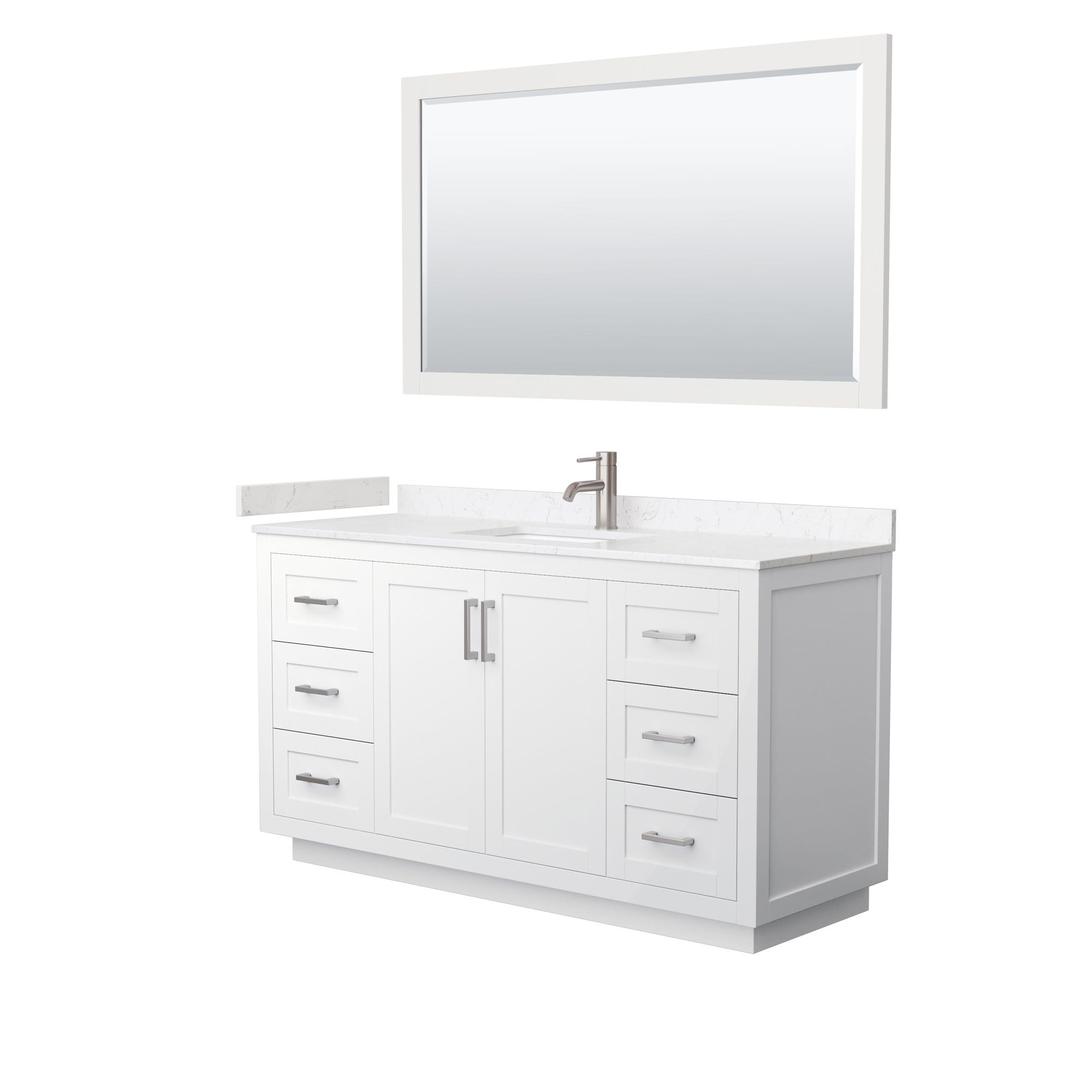 Wyndham Collection WCF292960SWHC2UNSM58 Miranda 60 Inch Single Bathroom Vanity in White, Light-Vein Carrara Cultured Marble Countertop, Undermount Square Sink, Brushed Nickel Trim, 58 Inch Mirror