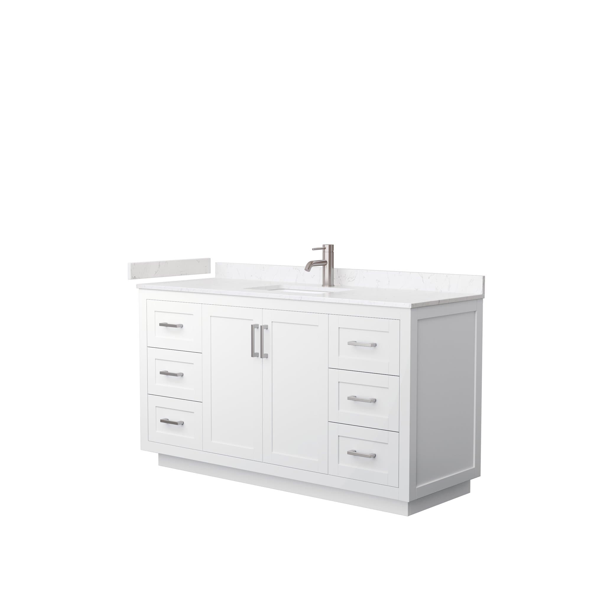 Wyndham Collection WCF292960SWHC2UNSMXX Miranda 60 Inch Single Bathroom Vanity in White, Light-Vein Carrara Cultured Marble Countertop, Undermount Square Sink, Brushed Nickel Trim