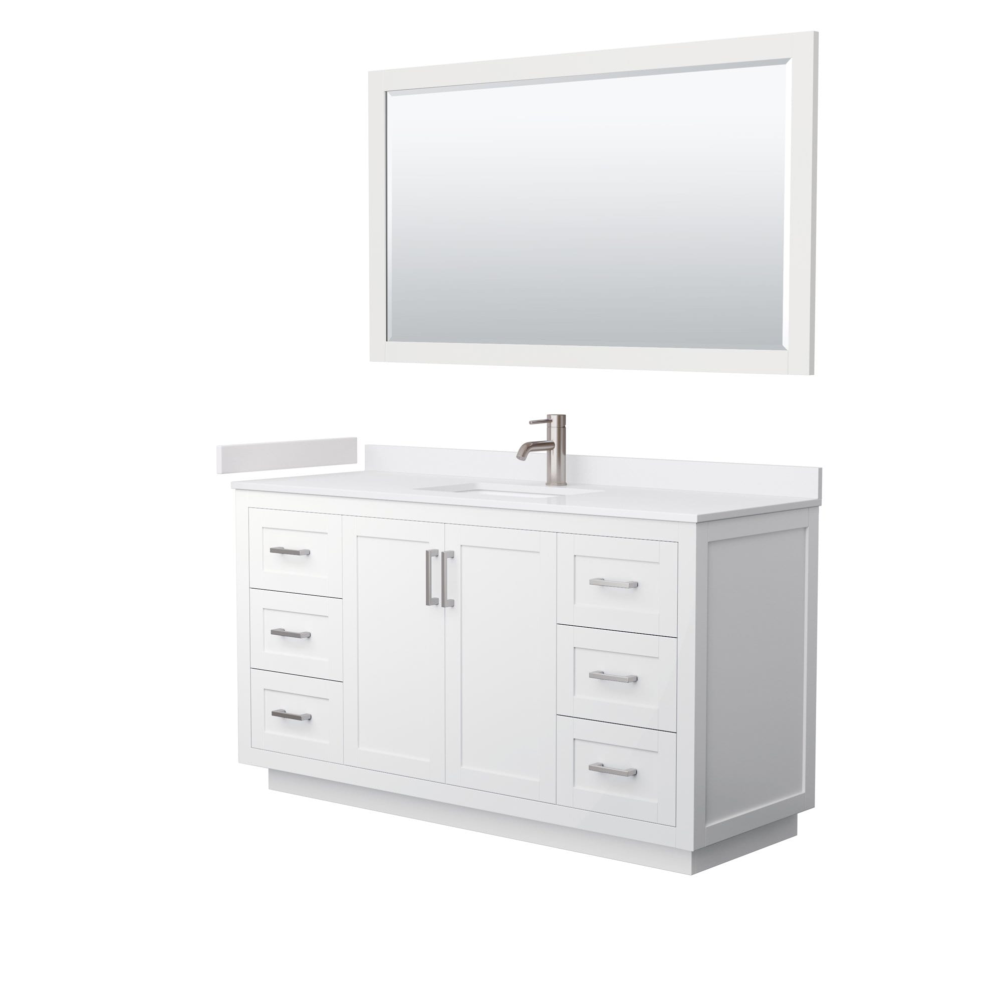 Wyndham Collection WCF292960SWHWCUNSM58 Miranda 60 Inch Single Bathroom Vanity in White, White Cultured Marble Countertop, Undermount Square Sink, Brushed Nickel Trim, 58 Inch Mirror
