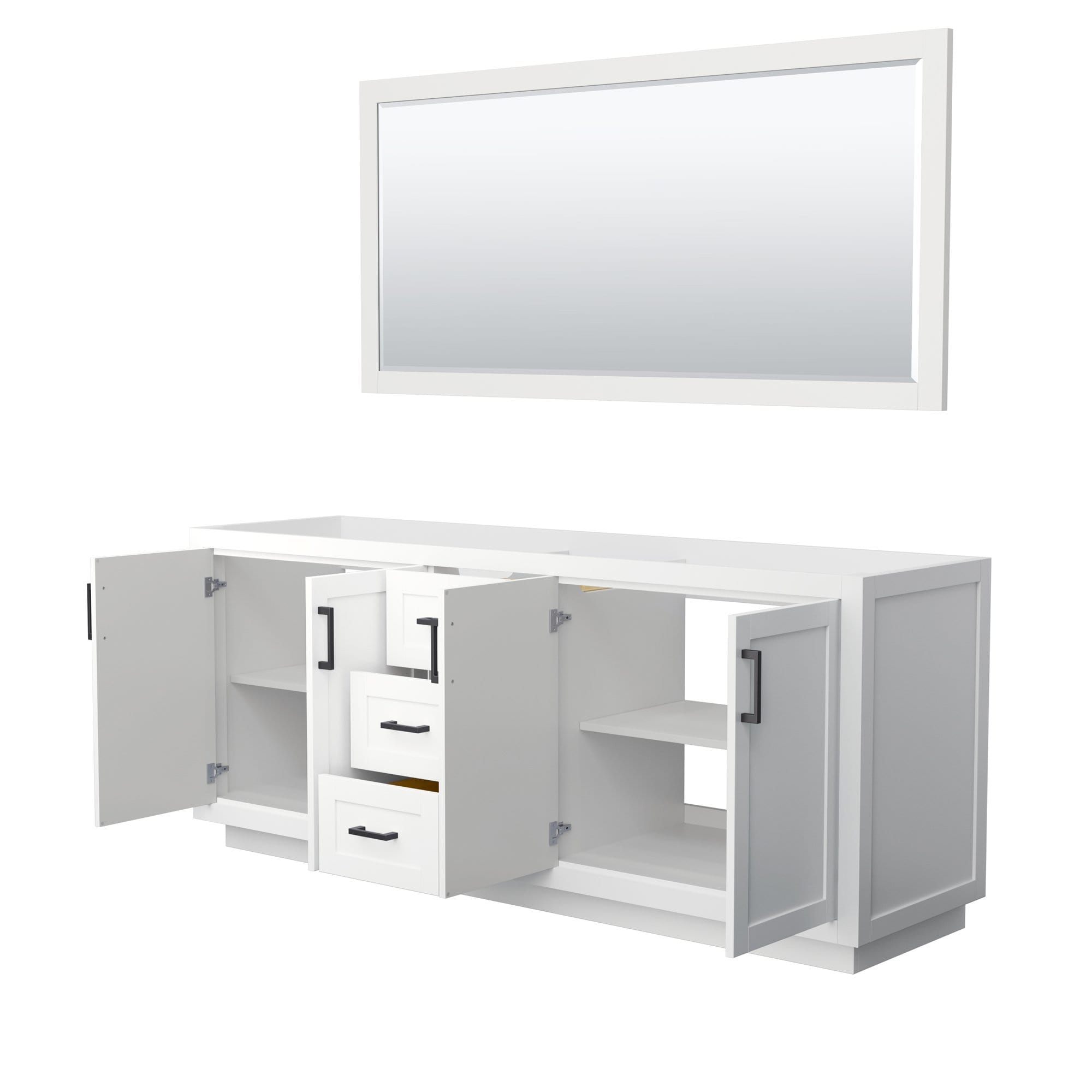 Wyndham Collection WCF292980DWBCXSXXM70 Miranda 80 Inch Double Bathroom Vanity in White, No Countertop, No Sink, Matte Black Trim, 70 Inch Mirror