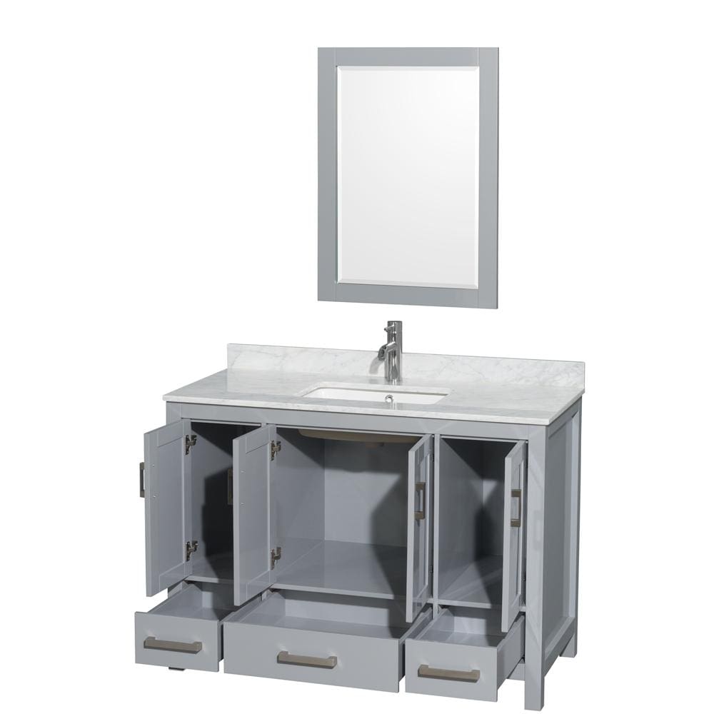 Wyndham Collection WCS141448SGYCMUNSM24 Sheffield 48 Inch Single Bathroom Vanity in Gray, White Carrara Marble Countertop, Undermount Square Sink, and 24 Inch Mirror