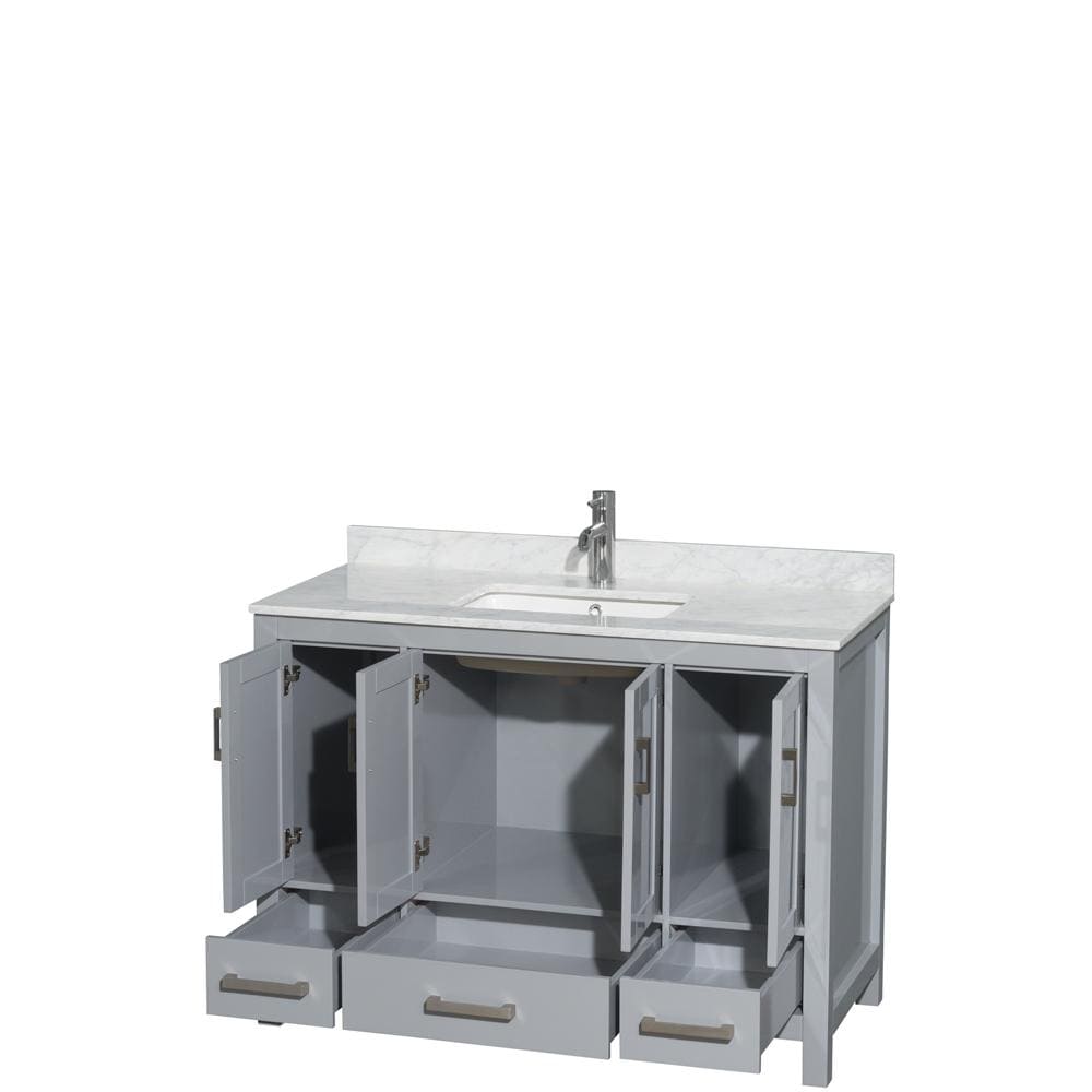 Wyndham Collection WCS141448SGYCMUNSMXX Sheffield 48 Inch Single Bathroom Vanity in Gray, White Carrara Marble Countertop, Undermount Square Sink, and No Mirror