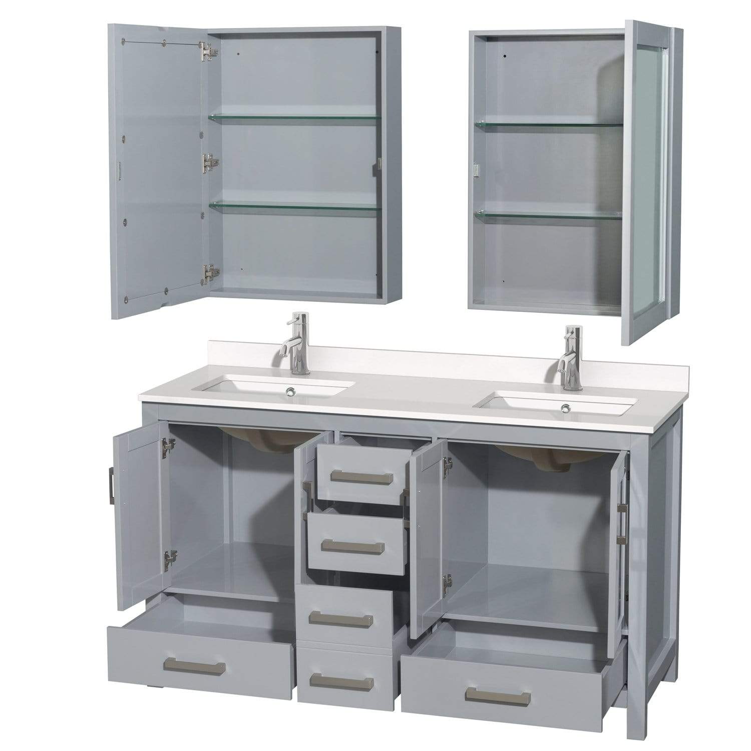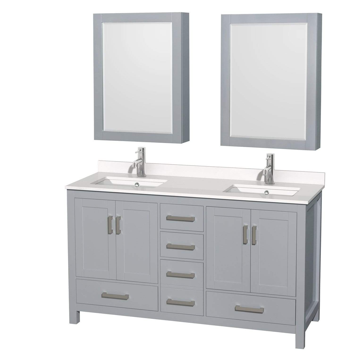 Wyndham Collection WCS141460DGYWQUNSMED Sheffield 60 Inch Double Bathroom Vanity in Gray, White Quartz Countertop, Undermount Square Sinks, Medicine Cabinets