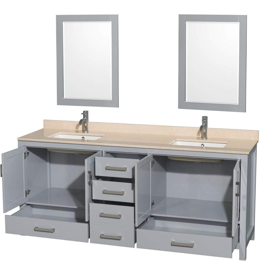 Wyndham Collection WCS141480DGYIVUNSM24 Sheffield 80 Inch Double Bathroom Vanity in Gray, Ivory Marble Countertop, Undermount Square Sinks, and 24 Inch Mirrors