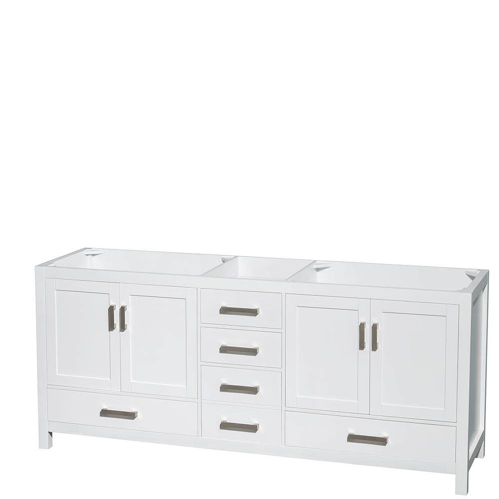 Wyndham Collection WCS141480DWHIVUNSM24 Sheffield 80 Inch Double Bathroom Vanity in White, Ivory Marble Countertop, Undermount Square Sinks, and 24 Inch Mirrors