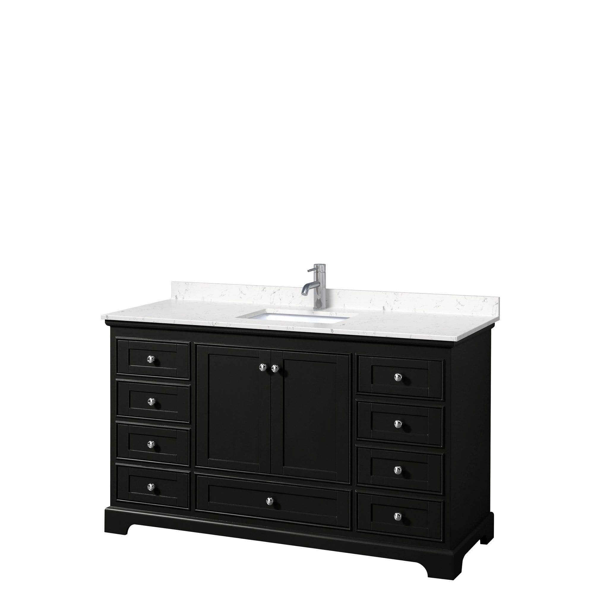 Wyndham Collection WCS202060SDEC2UNSMXX Deborah 60 Inch Single Bathroom Vanity in Dark Espresso, Light-Vein Carrara Cultured Marble Countertop, Undermount Square Sink, No Mirror