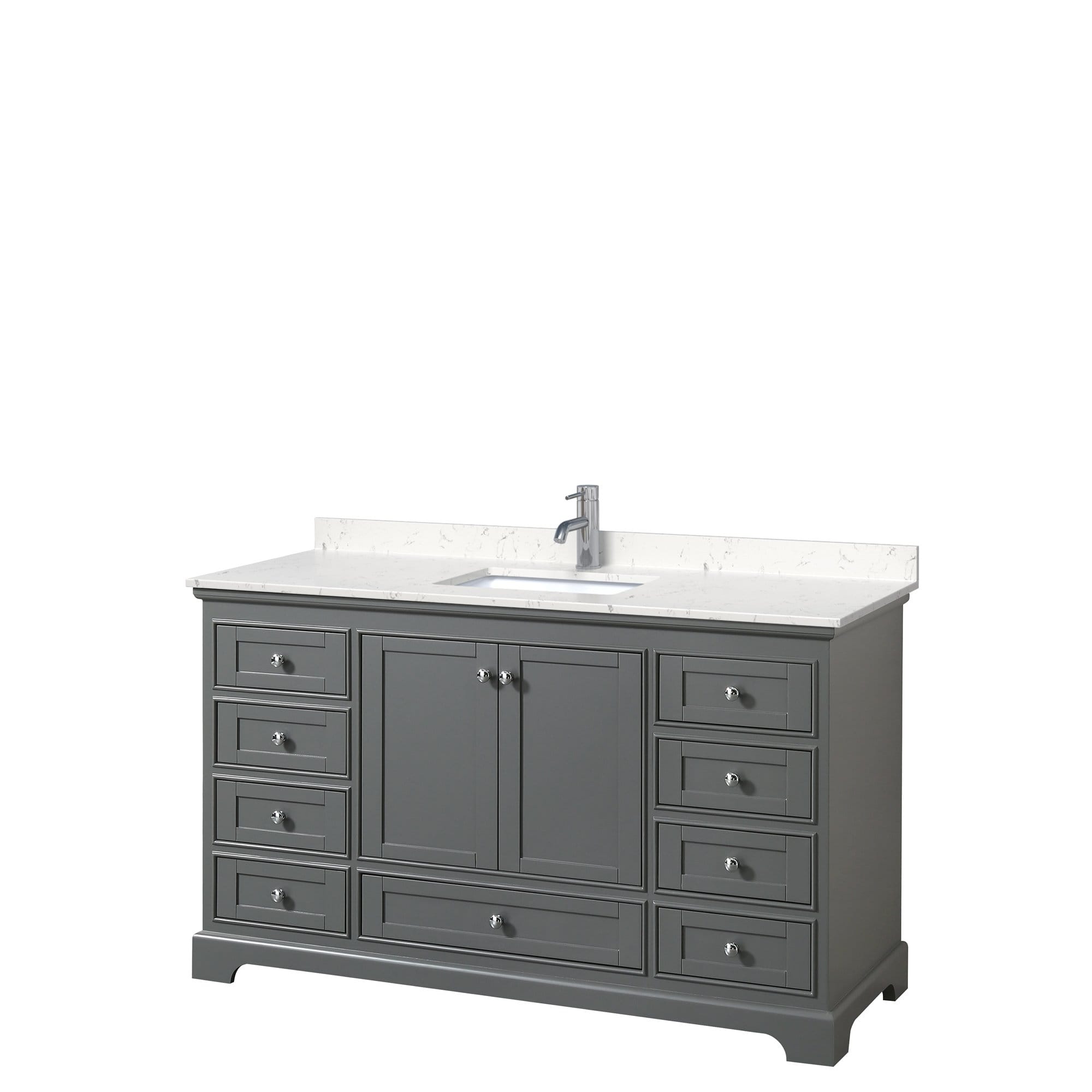 Wyndham Collection WCS202060SKGC2UNSMXX Deborah 60 Inch Single Bathroom Vanity in Dark Gray, Light-Vein Carrara Cultured Marble Countertop, Undermount Square Sink, No Mirror