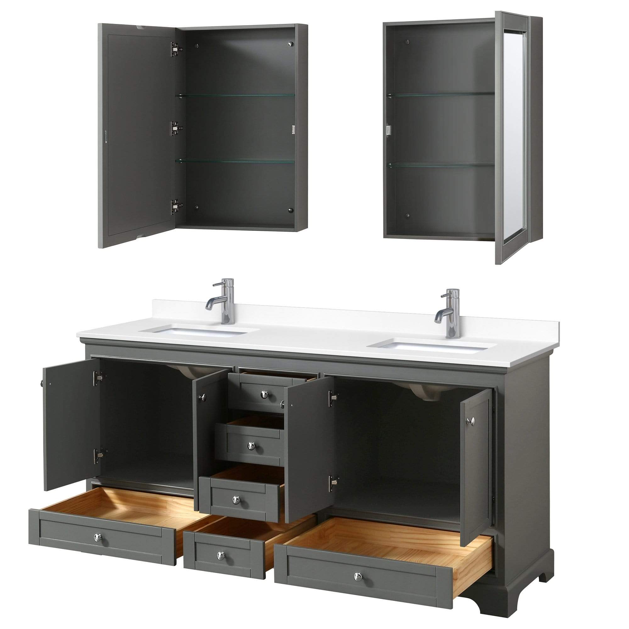 Wyndham Collection WCS202072DKGWCUNSMED Deborah 72 Inch Double Bathroom Vanity in Dark Gray, White Cultured Marble Countertop, Undermount Square Sinks, Medicine Cabinets
