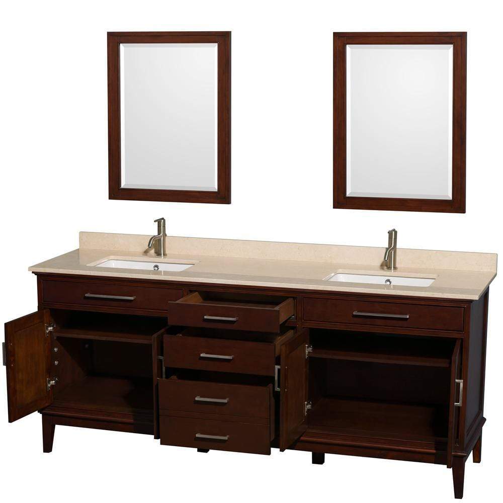 Wyndham Collection WCV161680DCDIVUNSM24 Hatton 80 Inch Double Bathroom Vanity in Dark Chestnut, Ivory Marble Countertop, Undermount Square Sinks, and 24 Inch Mirrors