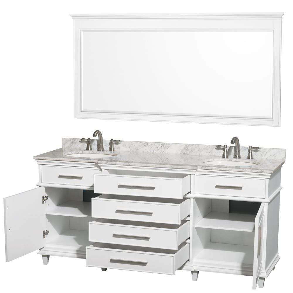 Wyndham Collection WCV171772DWHCMUNRM70 Berkeley 72 Inch Double Bathroom Vanity in White with White Carrara Marble Top with White Undermount Oval Sinks and 70 Inch Mirror