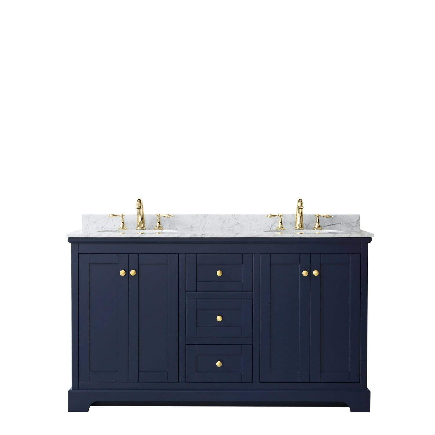 Wyndham Collection WCV232360DBLCMUNOM58 Avery 60 Inch Double Bathroom Vanity in Dark Blue, White Carrara Marble Countertop, Undermount Oval Sinks, and 58 Inch Mirror