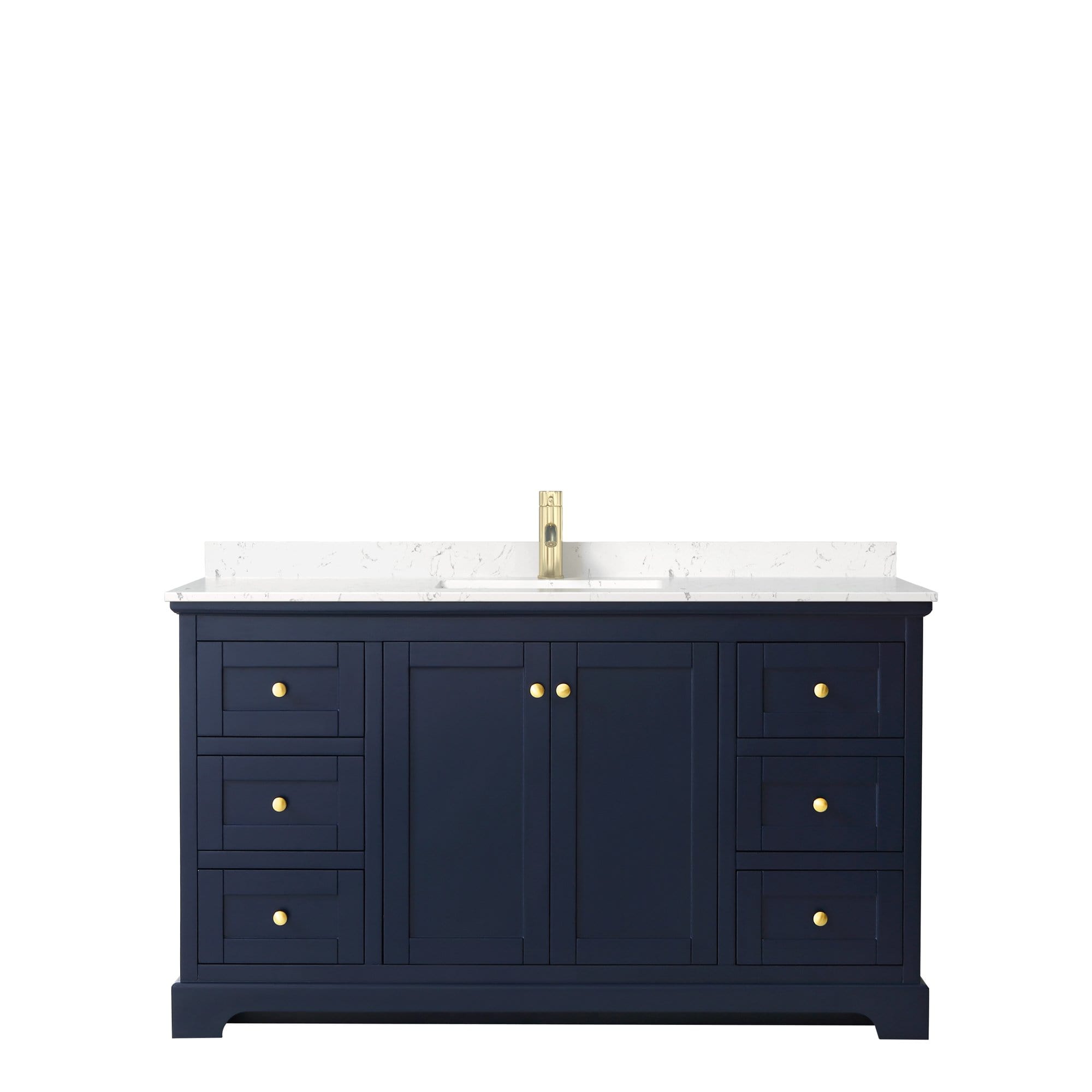 Wyndham Collection WCV232360SBLC2UNSMXX Avery 60 Inch Single Bathroom Vanity in Dark Blue, Light-Vein Carrara Cultured Marble Countertop, Undermount Square Sink, No Mirror