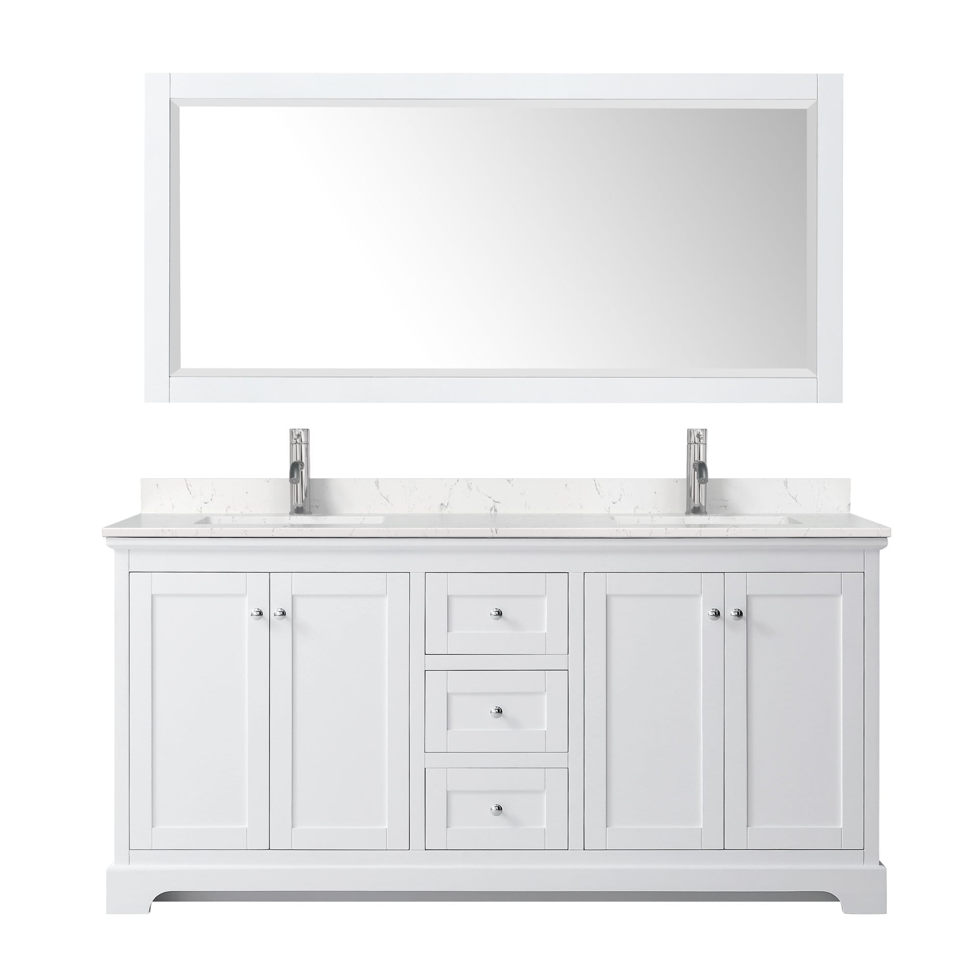 Wyndham Collection WCV232372DWHC2UNSM70 Avery 72 Inch Double Bathroom Vanity in White, Light-Vein Carrara Cultured Marble Countertop, Undermount Square Sinks, 70 Inch Mirror