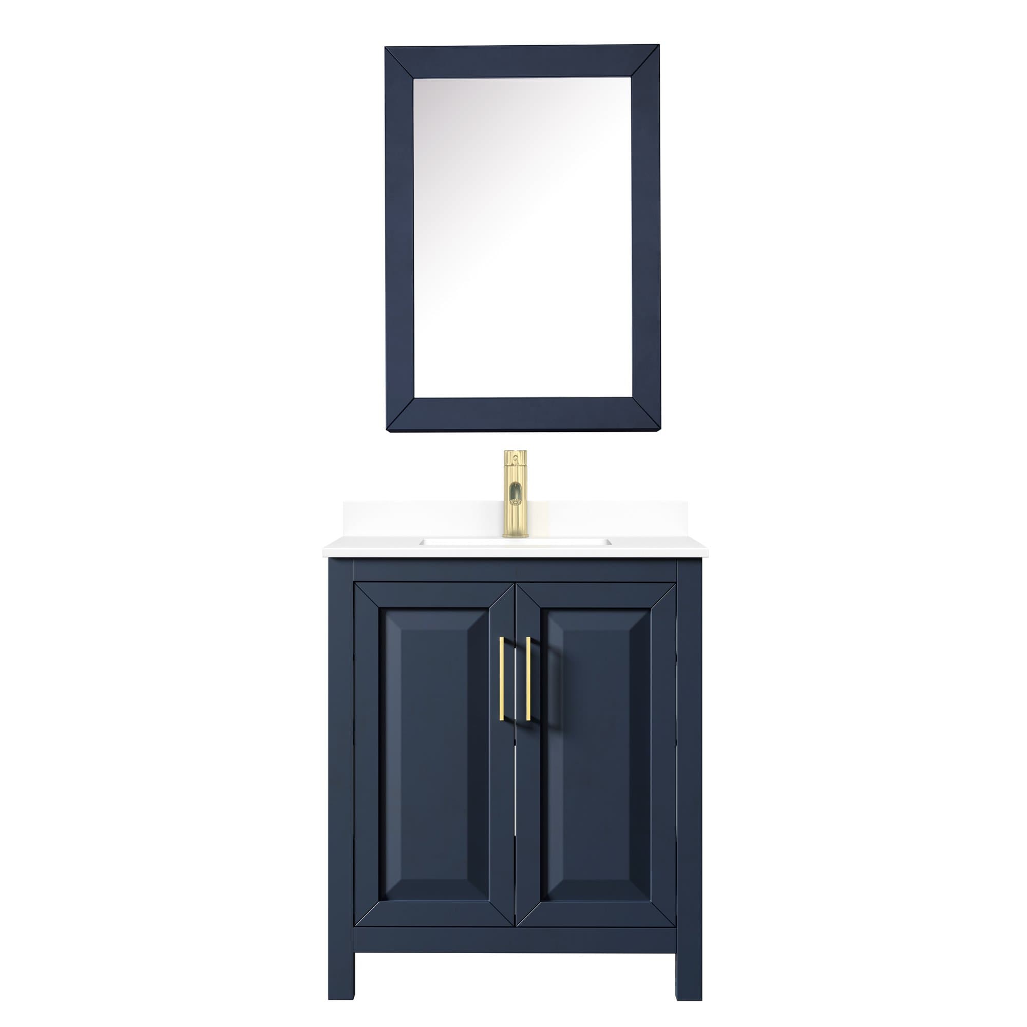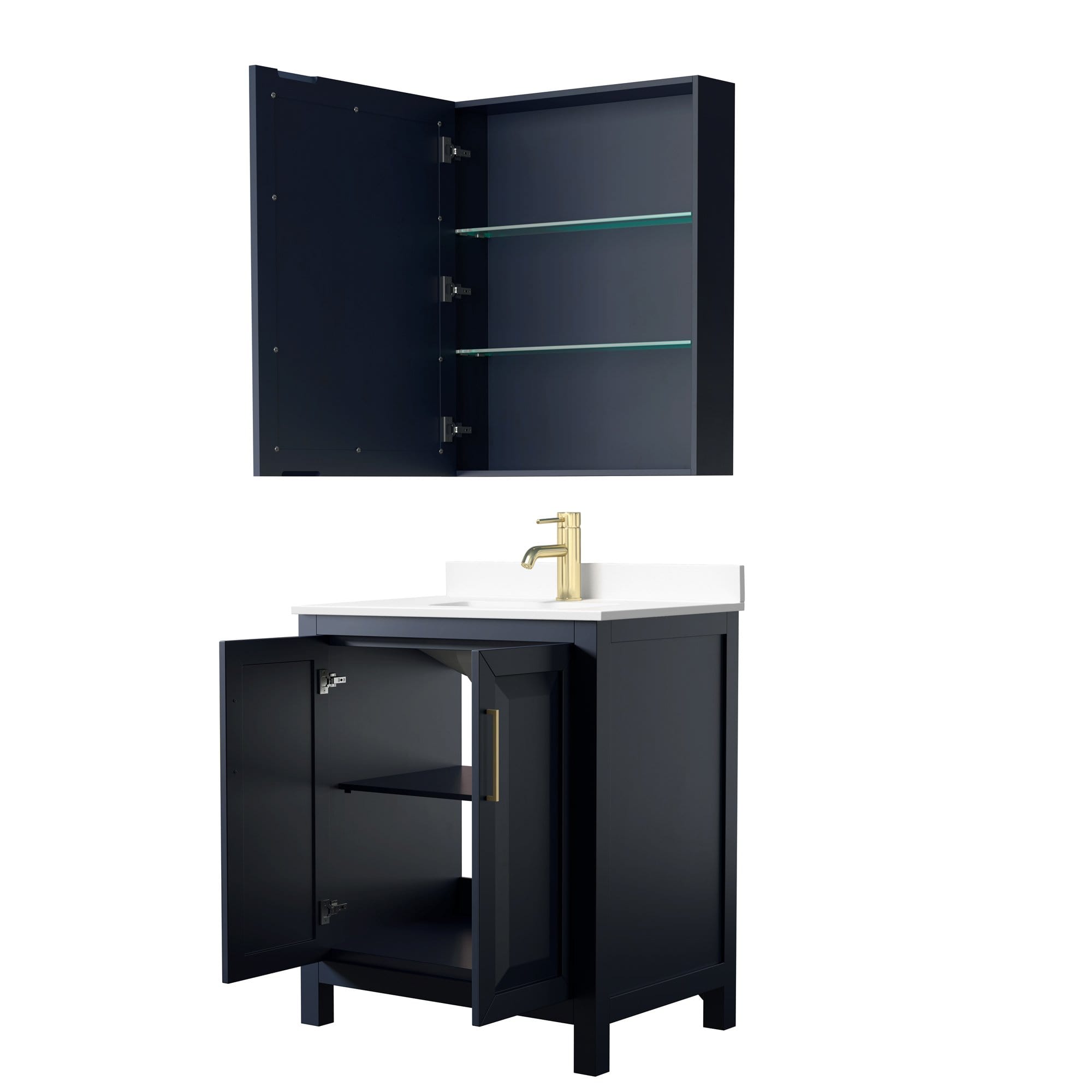 Wyndham Collection WCV252530SBLWCUNSMED Daria 30 Inch Single Bathroom Vanity in Dark Blue, White Cultured Marble Countertop, Undermount Square Sink, Medicine Cabinet