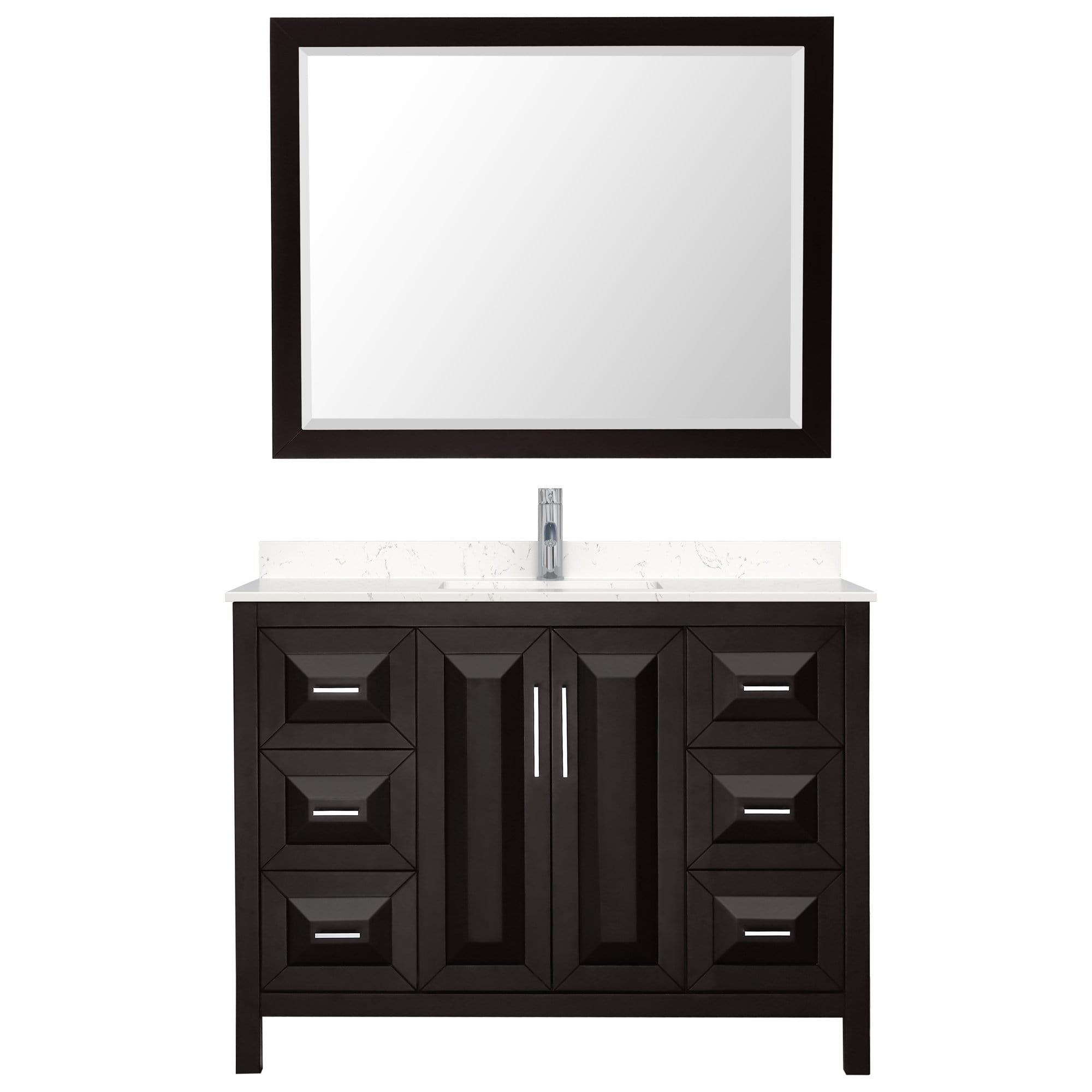 Wyndham Collection WCV252548SDEC2UNSM46 Daria 48 Inch Single Bathroom Vanity in Dark Espresso, Light-Vein Carrara Cultured Marble Countertop, Undermount Square Sink, 46 Inch Mirror