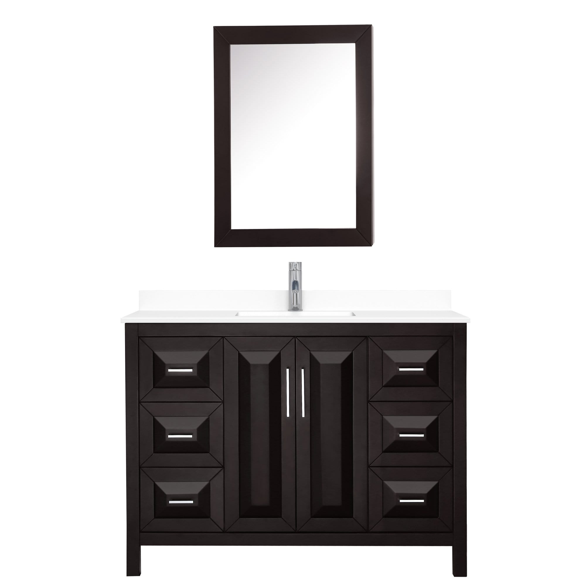 Wyndham Collection WCV252548SDEWCUNSMED Daria 48 Inch Single Bathroom Vanity in Dark Espresso, White Cultured Marble Countertop, Undermount Square Sink, Medicine Cabinet
