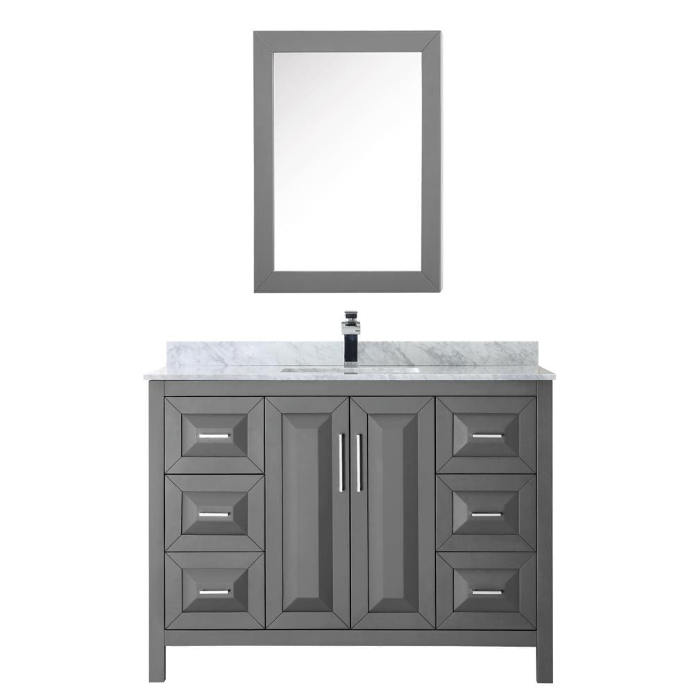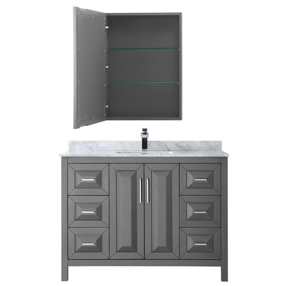 Wyndham Collection WCV252548SKGCMUNSMED Daria 48 Inch Single Bathroom Vanity in Dark Gray, White Carrara Marble Countertop, Undermount Square Sink, and Medicine Cabinet