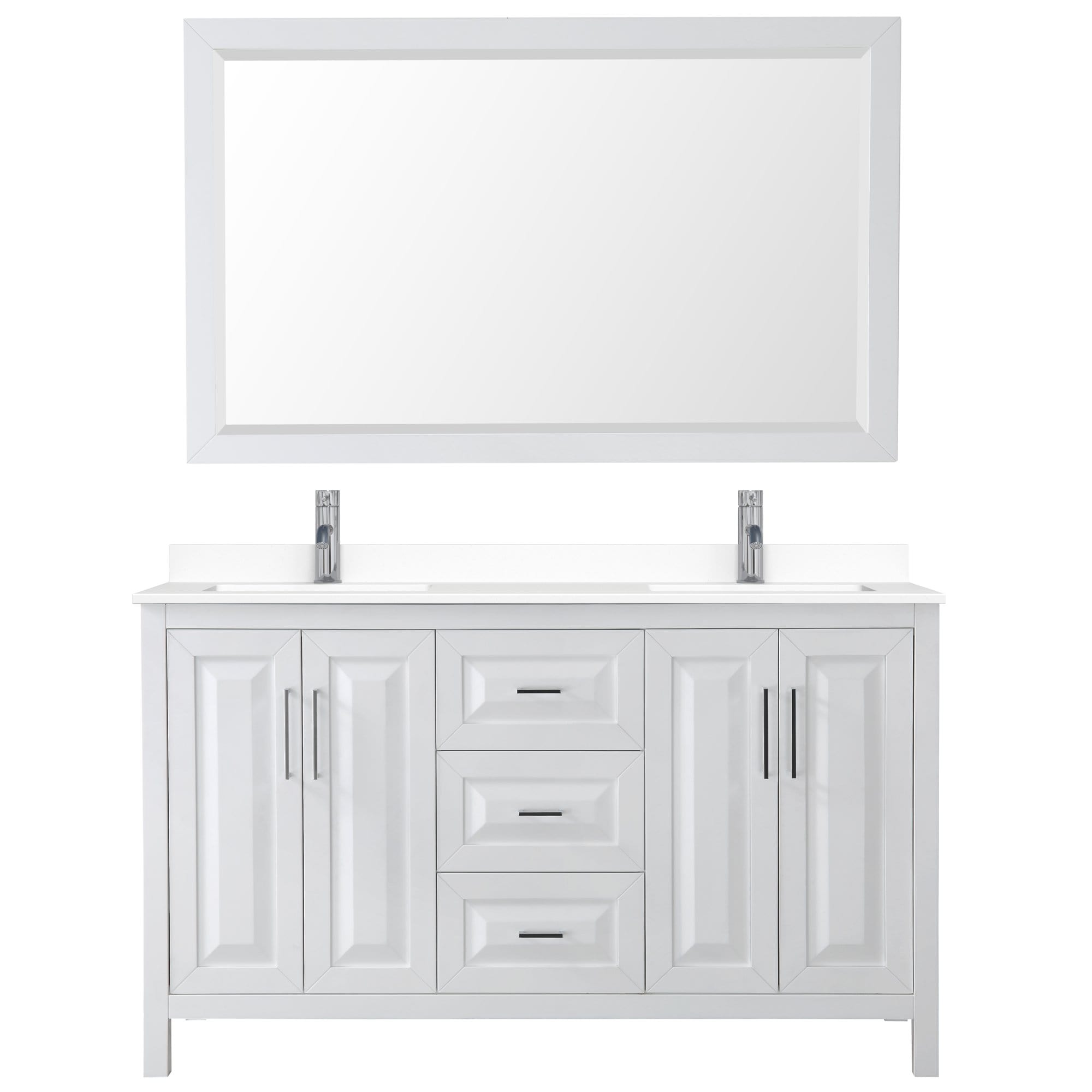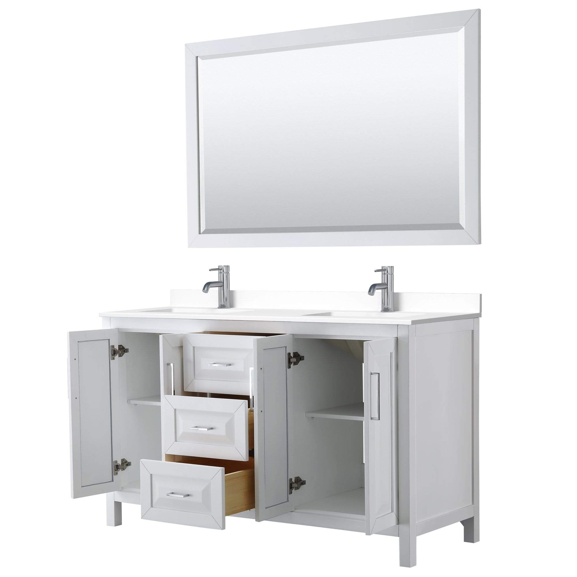 Wyndham Collection WCV252560DWHWCUNSM58 Daria 60 Inch Double Bathroom Vanity in White, White Cultured Marble Countertop, Undermount Square Sinks, 58 Inch Mirror