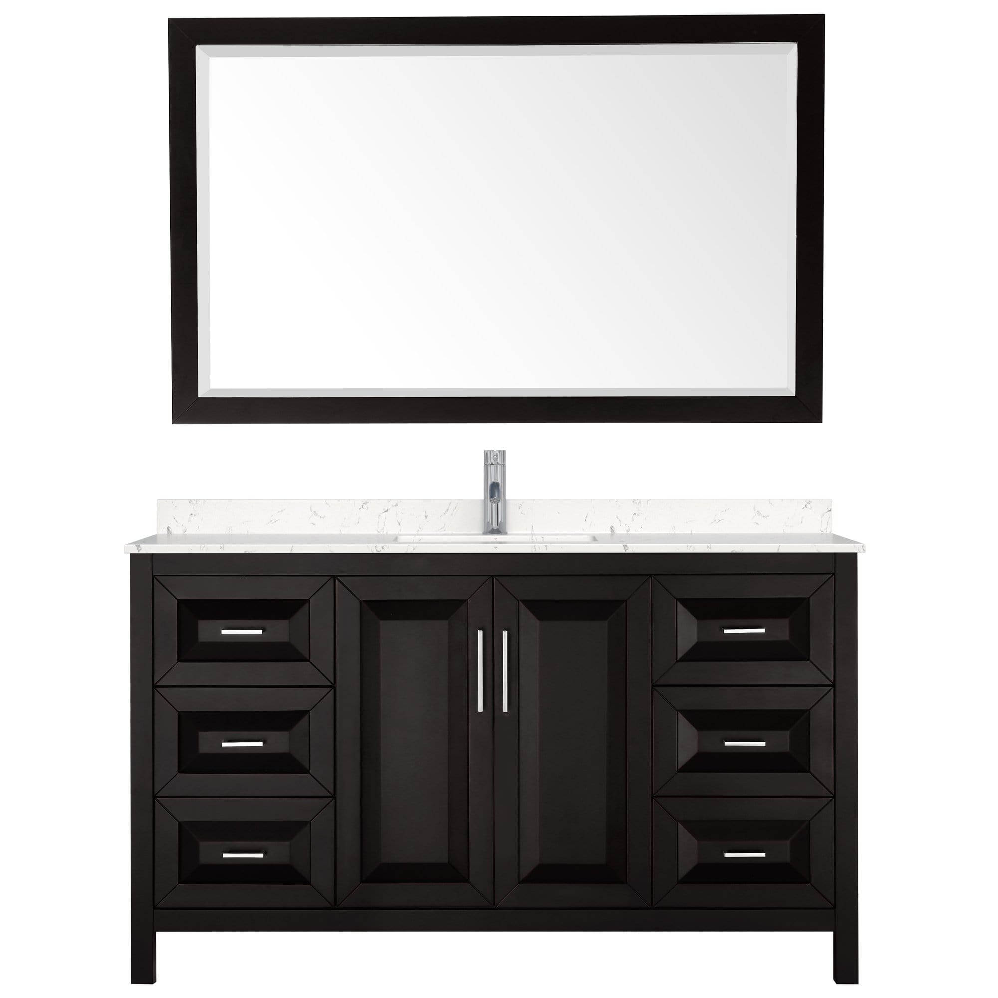 Wyndham Collection WCV252560SDEC2UNSM58 Daria 60 Inch Single Bathroom Vanity in Dark Espresso, Light-Vein Carrara Cultured Marble Countertop, Undermount Square Sink, 58 Inch Mirror
