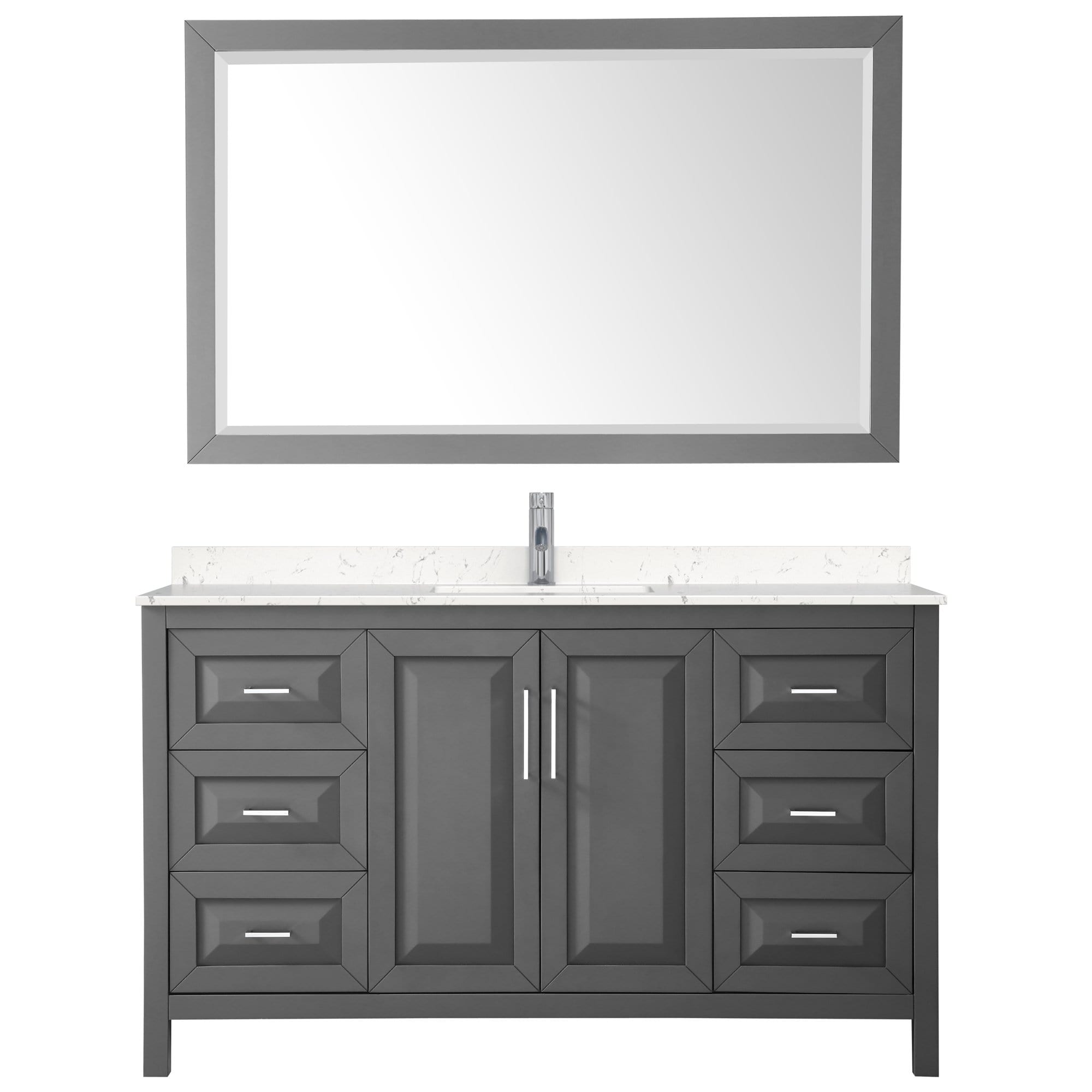 Wyndham Collection WCV252560SKGC2UNSM58 Daria 60 Inch Single Bathroom Vanity in Dark Gray, Light-Vein Carrara Cultured Marble Countertop, Undermount Square Sink, 58 Inch Mirror