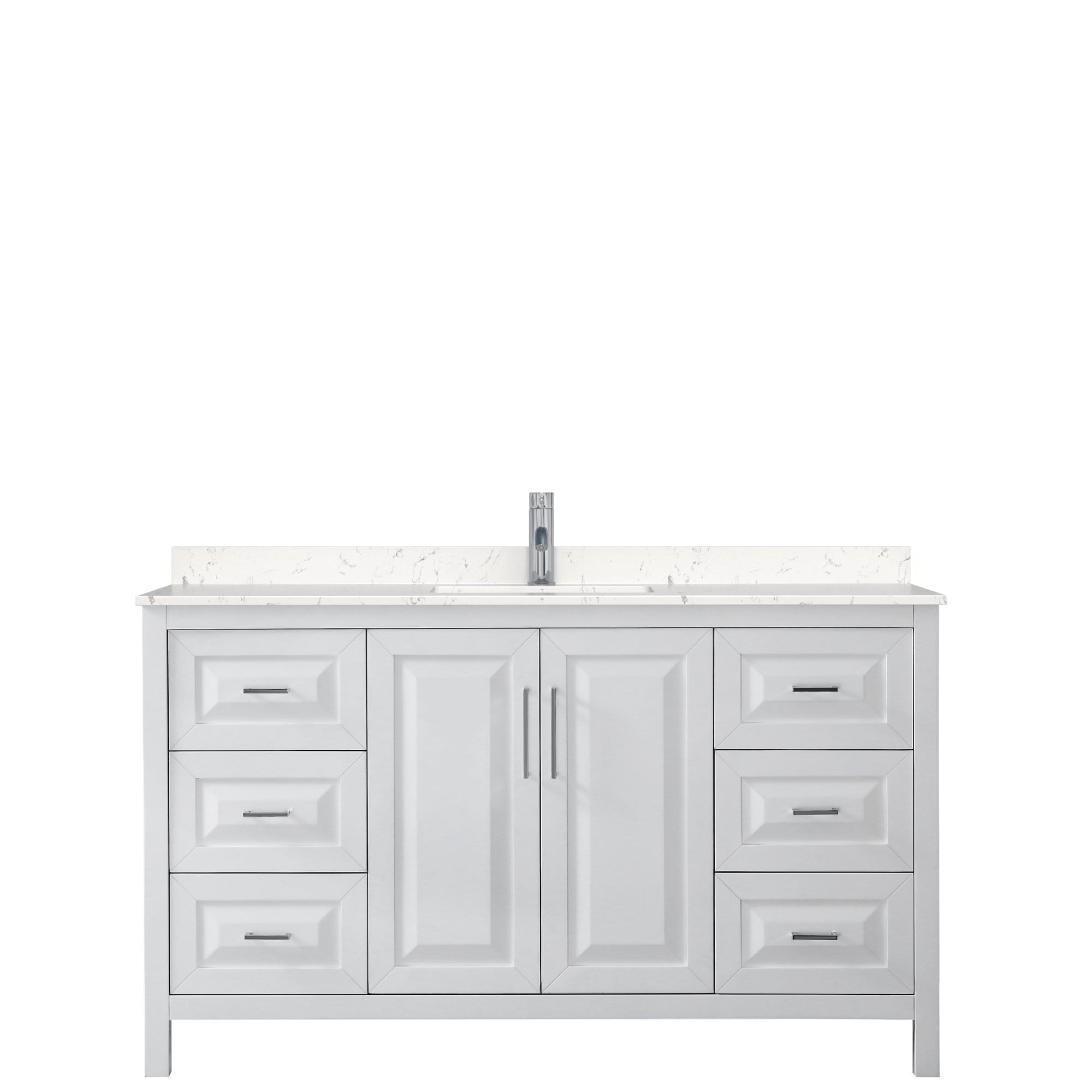 Wyndham Collection WCV252560SWHC2UNSMXX Daria 60 Inch Single Bathroom Vanity in White, Light-Vein Carrara Cultured Marble Countertop, Undermount Square Sink, No Mirror