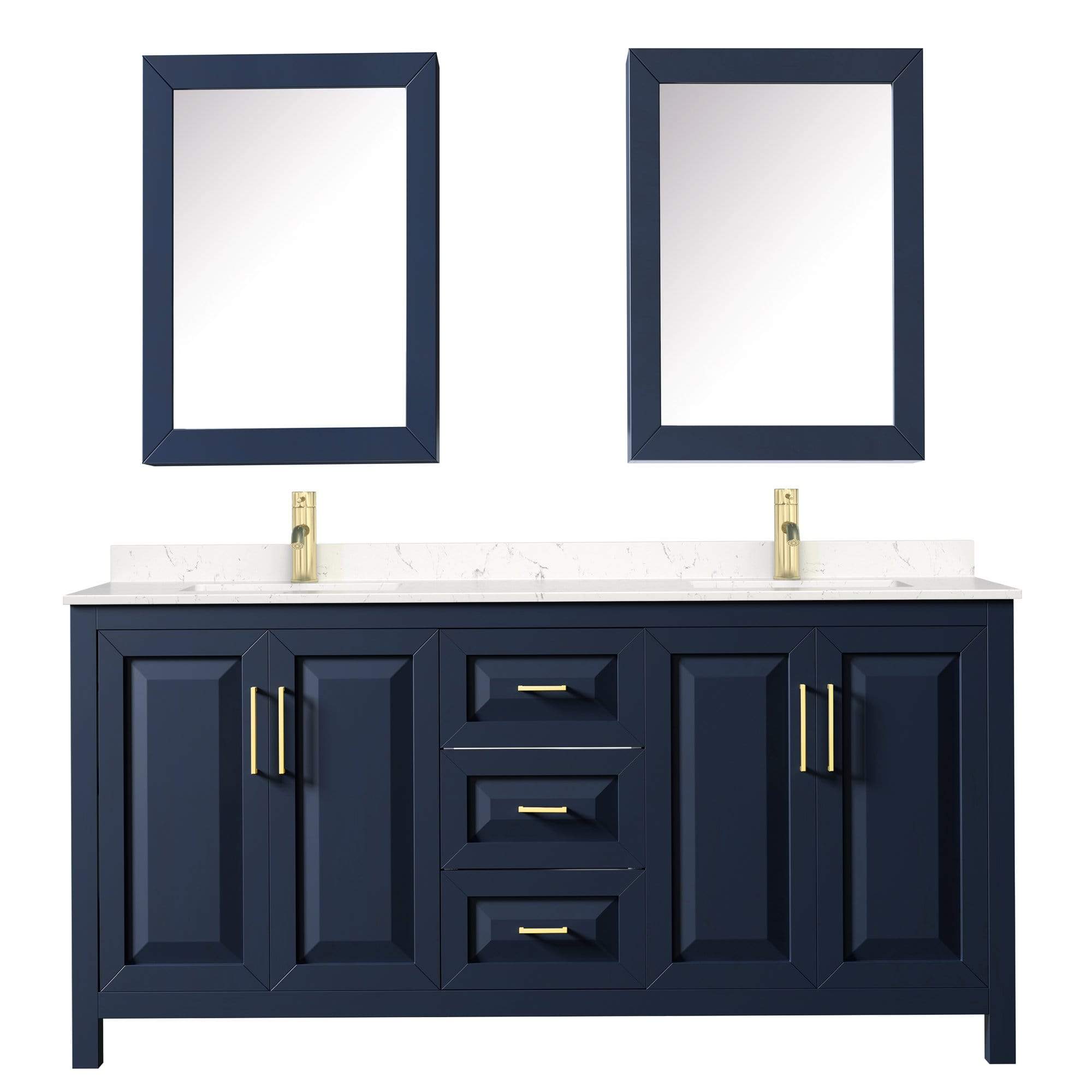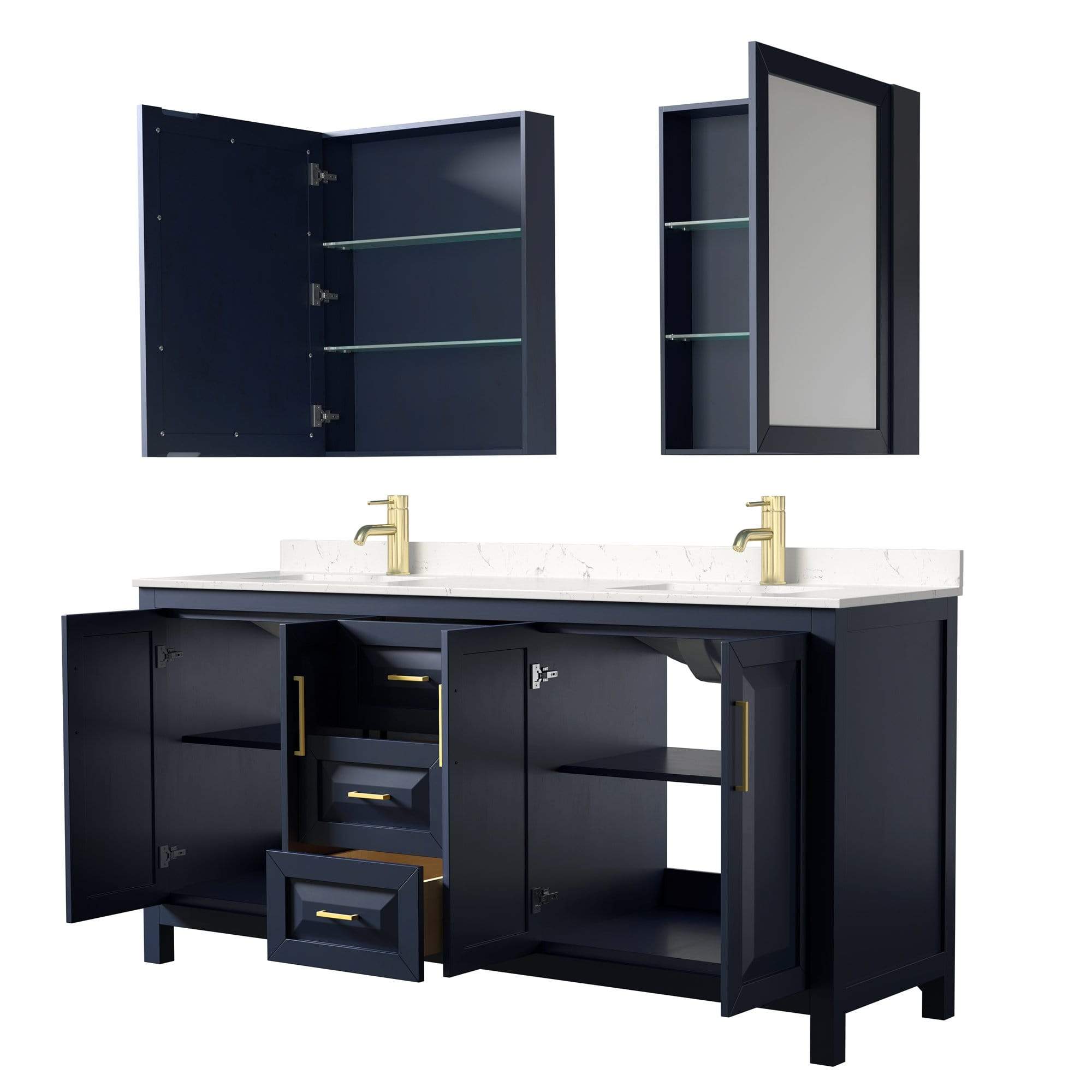 Wyndham Collection WCV252572DBLC2UNSMED Daria 72 Inch Double Bathroom Vanity in Dark Blue, Light-Vein Carrara Cultured Marble Countertop, Undermount Square Sinks, Medicine Cabinets
