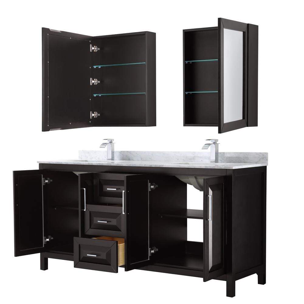 Wyndham Collection Vanity Wyndham Collection WCV252572DDECMUNSMED Daria 72 Inch Double Bathroom Vanity in Dark Espresso, White Carrara Marble Countertop, Undermount Square Sinks, and Medicine Cabinets