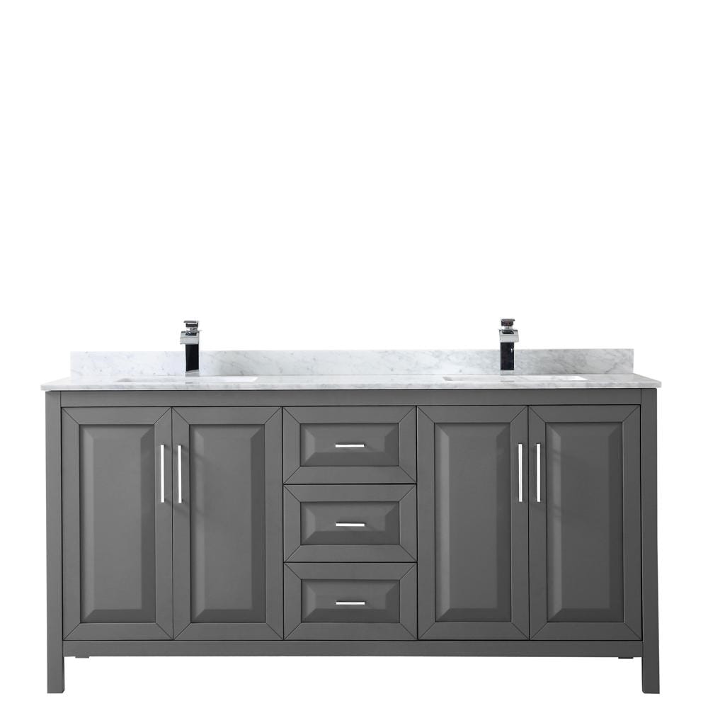Wyndham Collection WCV252572DKGCMUNSMXX Daria 72 Inch Double Bathroom Vanity in Dark Gray, White Carrara Marble Countertop, Undermount Square Sinks, and No Mirror