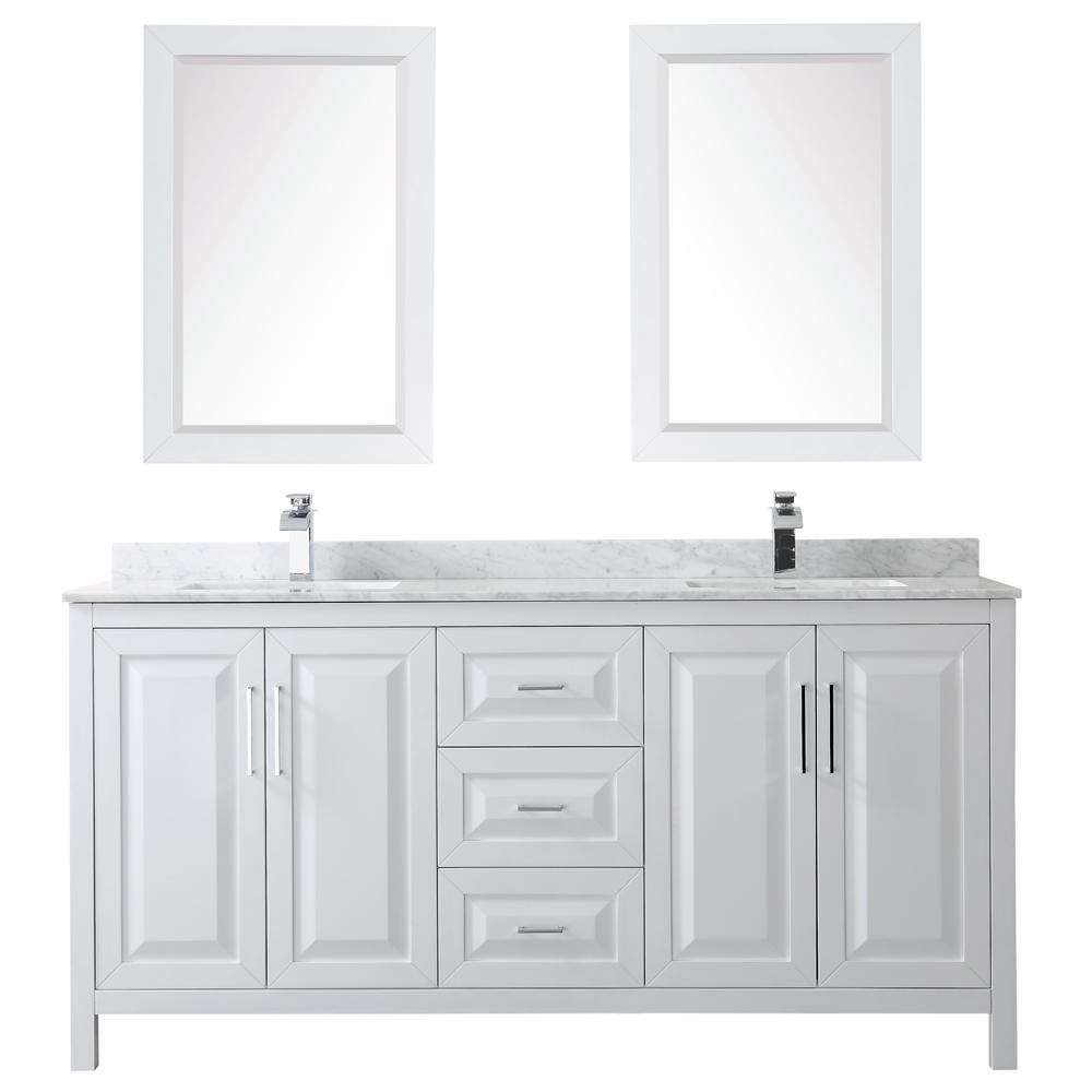 Wyndham Collection WCV252572DWHCMUNSM24 Daria 72 Inch Double Bathroom Vanity in White, White Carrara Marble Countertop, Undermount Square Sinks, and 24 Inch Mirrors