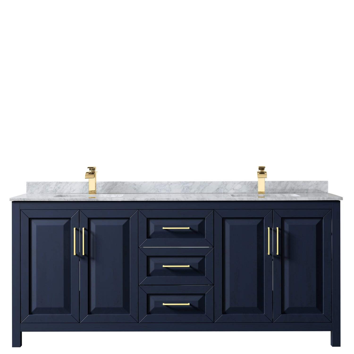 Wyndham WCV252580DBLCMUNSMXX Daria 80 Inch Double Bathroom Vanity in Dark Blue, White Carrara Marble Countertop, Undermount Square Sinks, No Mirror