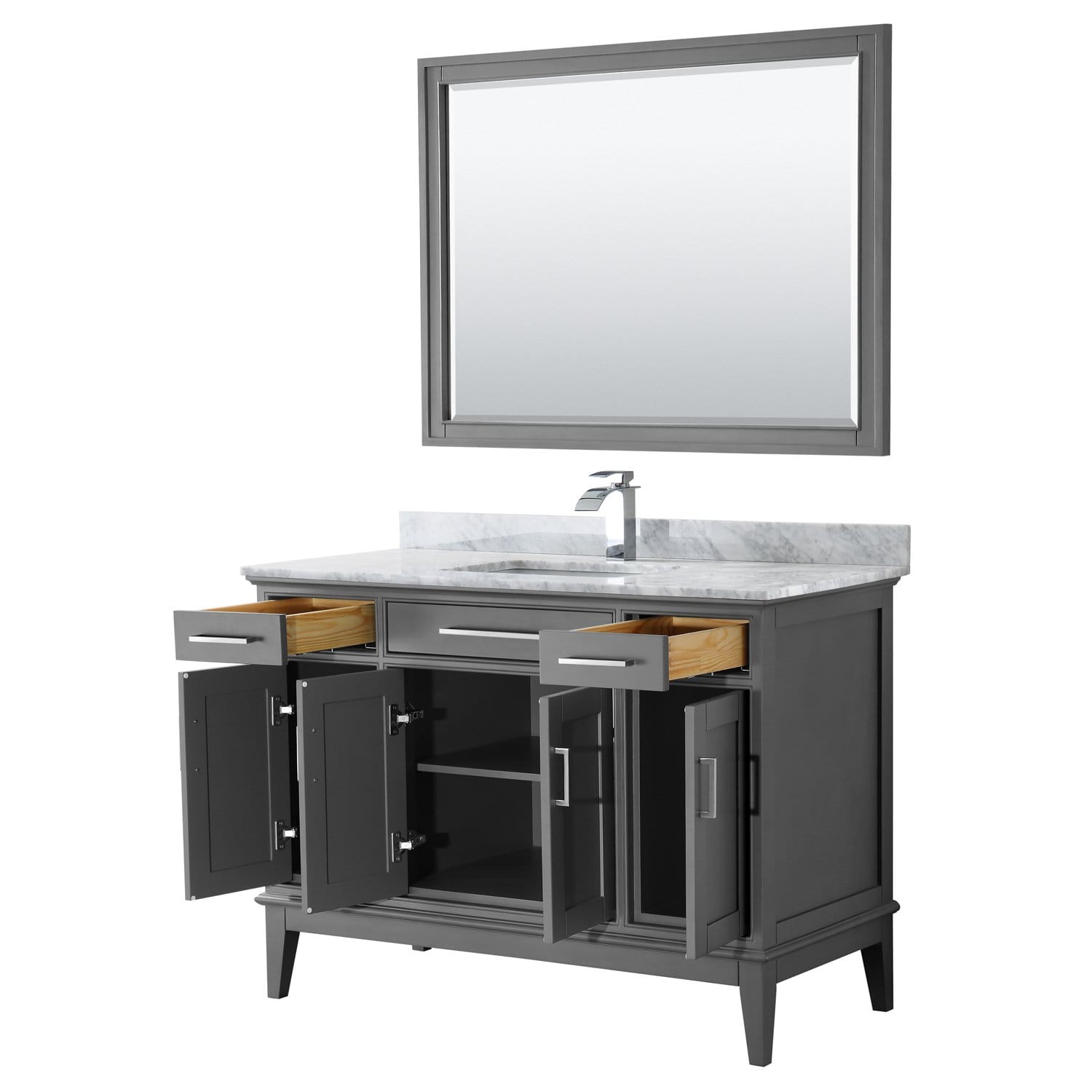 Wyndham Collection WCV303048SKGCMUNSM44 Margate 48 Inch Single Bathroom Vanity in Dark Gray, White Carrara Marble Countertop, Undermount Square Sink, and 44 Inch Mirror