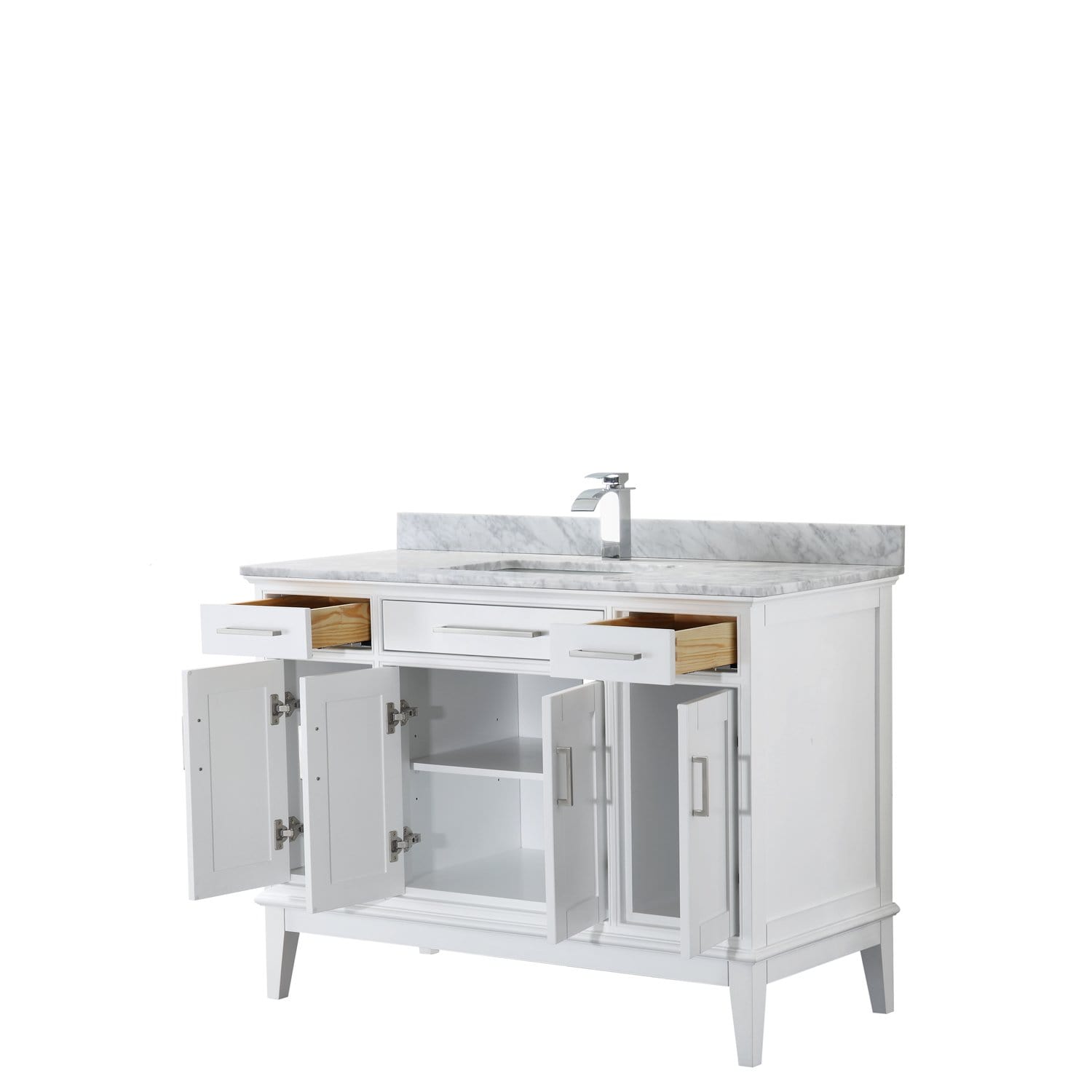 Wyndham Collection WCV303048SWHCMUNSMXX Margate 48 Inch Single Bathroom Vanity in White, White Carrara Marble Countertop, Undermount Square Sink, and No Mirror