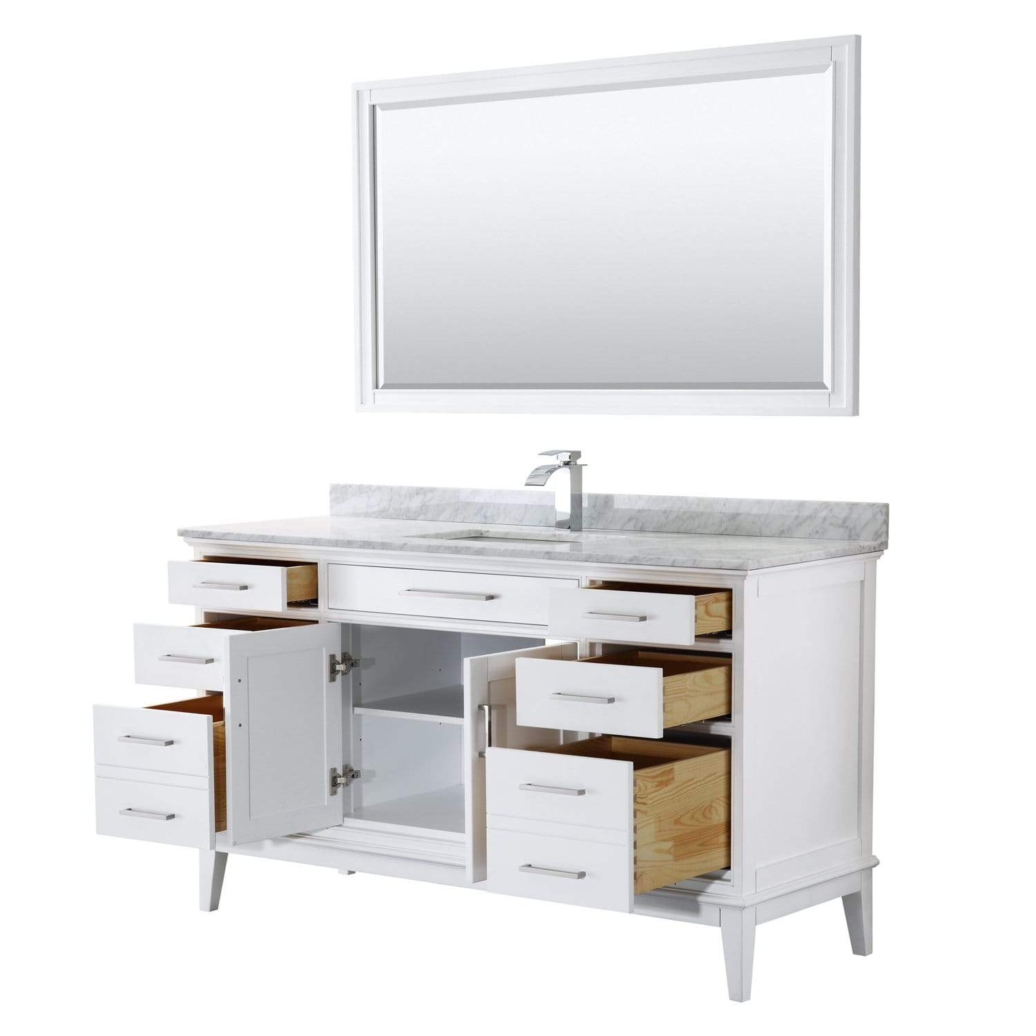 Wyndham Collection WCV303060SWHCMUNSM56 Margate 60 Inch Single Bathroom Vanity in White, White Carrara Marble Countertop, Undermount Square Sink, and 56 Inch Mirror