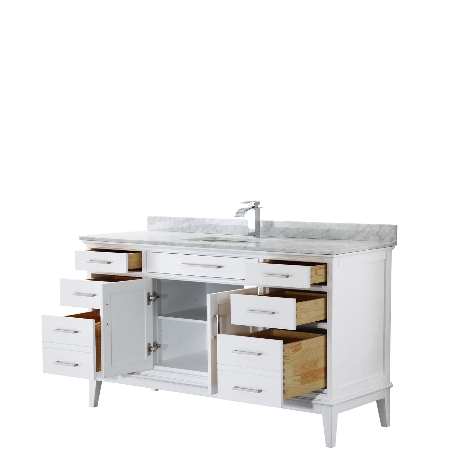 Wyndham Collection WCV303060SWHCMUNSMXX Margate 60 Inch Single Bathroom Vanity in White, White Carrara Marble Countertop, Undermount Square Sink, and No Mirror