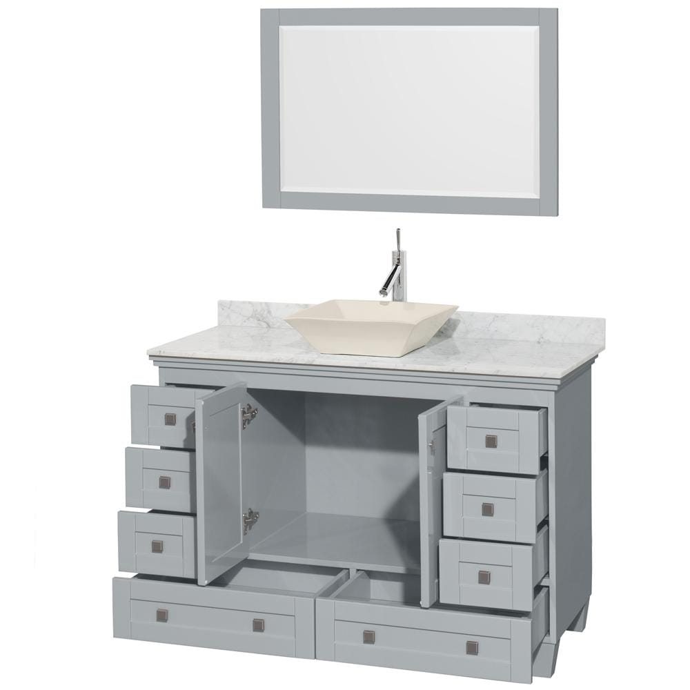 Wyndham Collection WCV800048SOYCMD2BM24 Acclaim 48 Inch Single Bathroom Vanity in Oyster Gray, White Carrara Marble Countertop, Pyra Bone Porcelain Sink, and 24 Inch Mirror