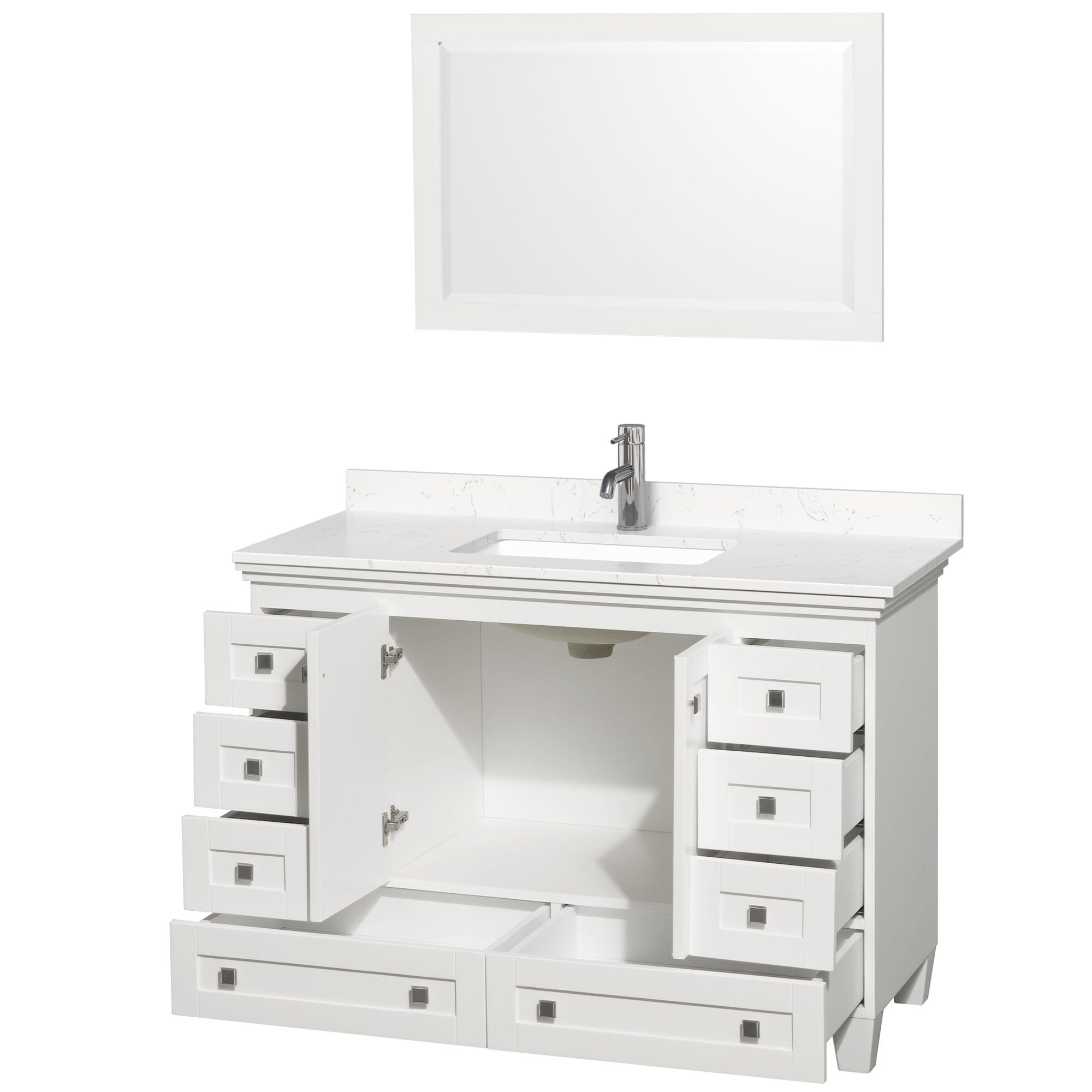 Wyndham Collection WCV800048SWHC2UNSM24 Acclaim 48 Inch Single Bathroom Vanity in White, Light-Vein Carrara Cultured Marble Countertop, Undermount Square Sink, 24 Inch Mirror