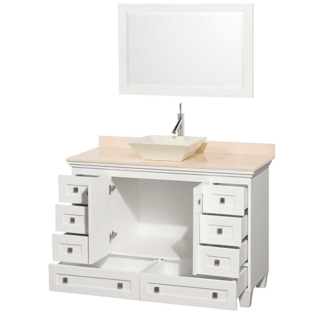 Wyndham Collection WCV800048SWHIVD2BM24 Acclaim 48 Inch Single Bathroom Vanity in White, Ivory Marble Countertop, Pyra Bone Sink, and 24 Inch Mirror
