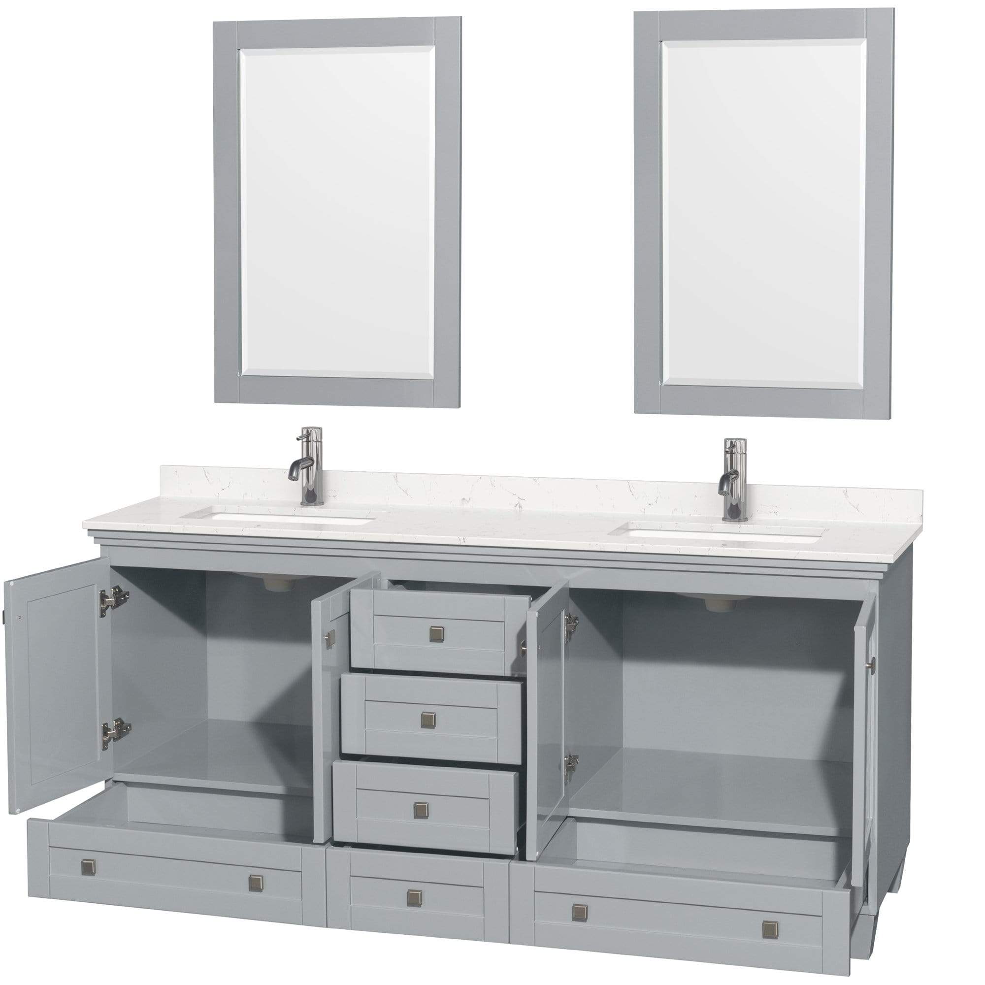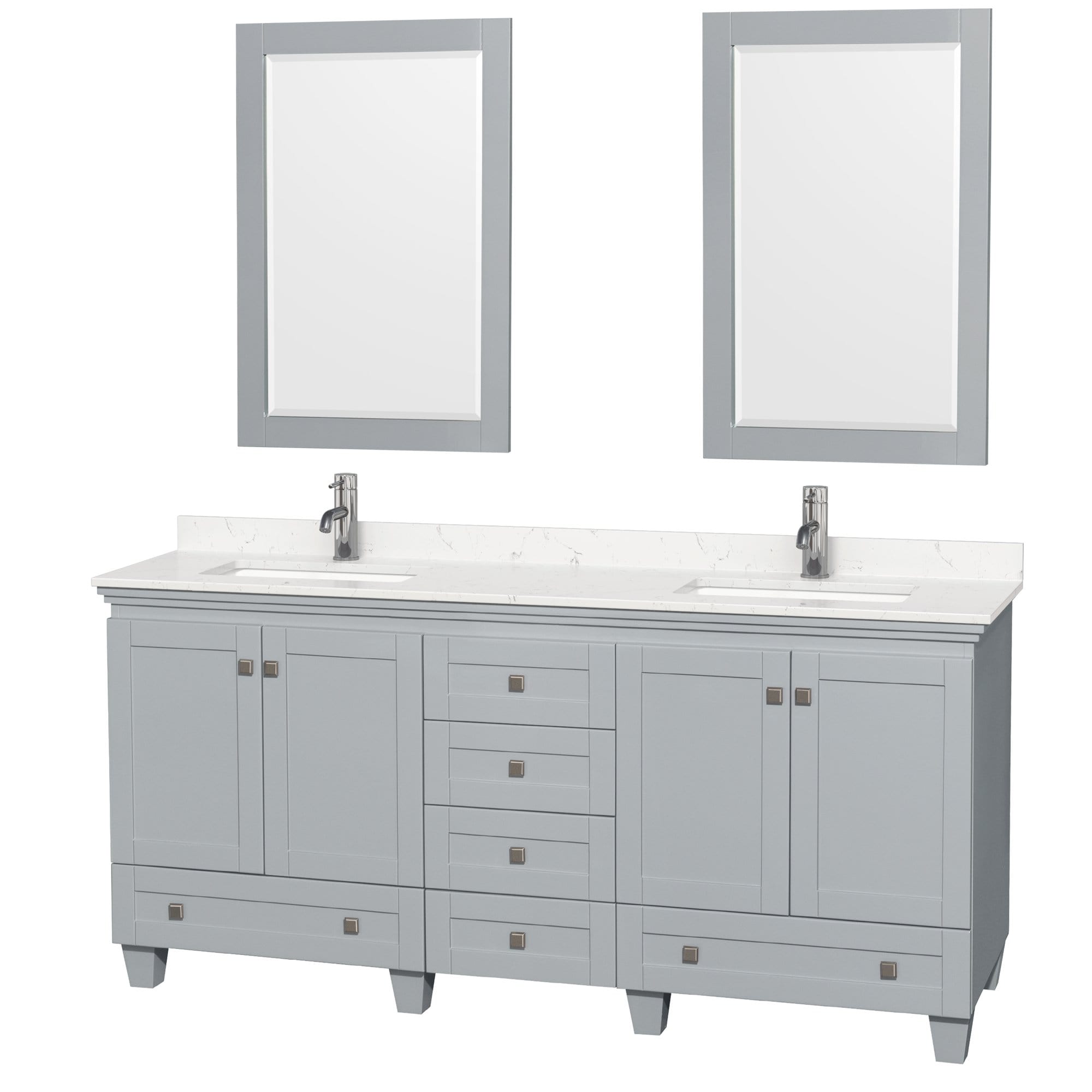 Wyndham Collection WCV800072DOYC2UNSM24 Acclaim 72 Inch Double Bathroom Vanity in Oyster Gray, Light-Vein Carrara Cultured Marble Countertop, Undermount Square Sinks, 24 Inch Mirrors